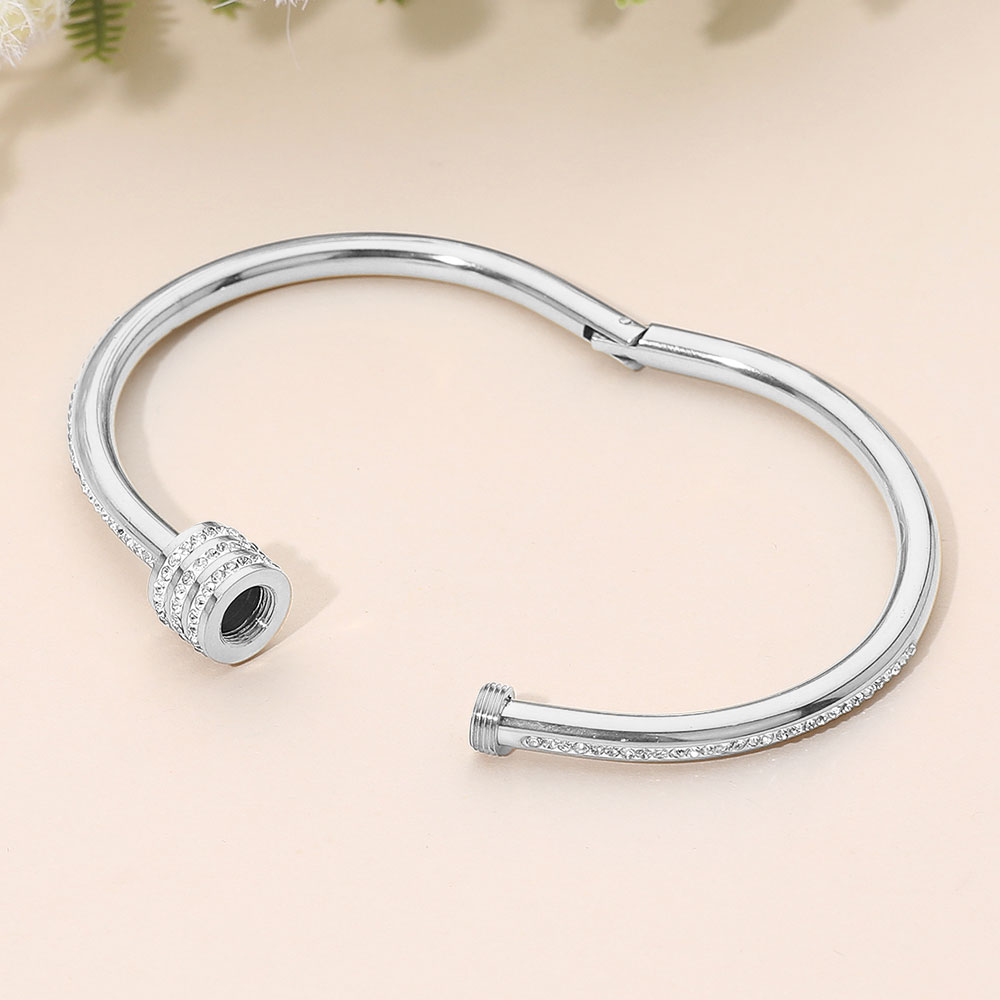 SECRET BOX_Stainless Steel Rhinestone Paved Slider Bar Accent Hinged Bangle Bracelet