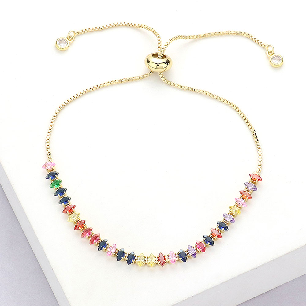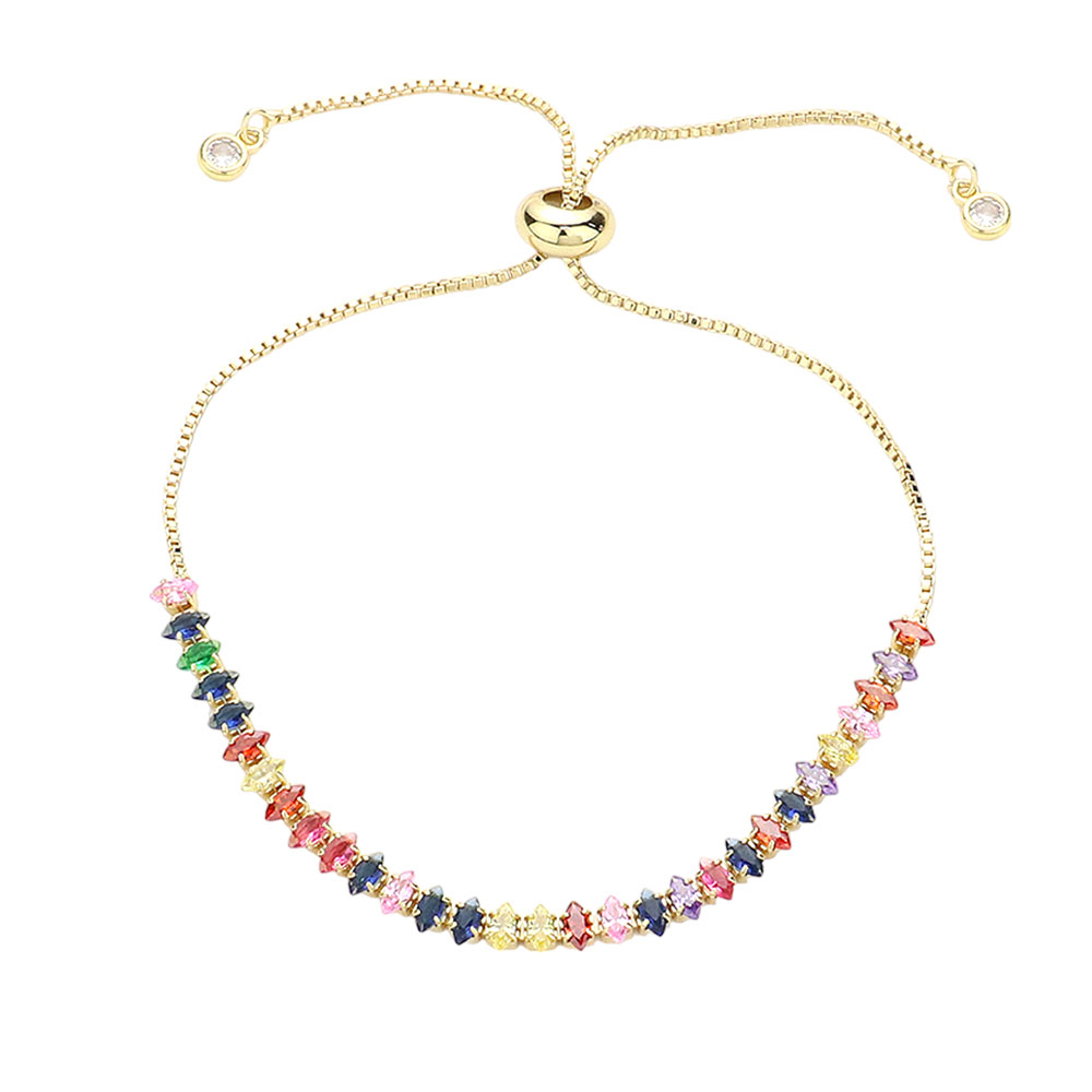 Stainless Steel Marquise CZ Stone Tennis Chain Pull Tie Adjustable Bracelet