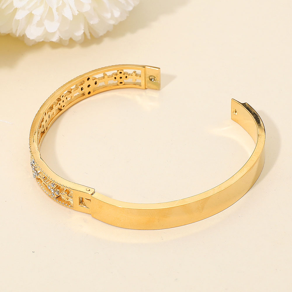 Stainless Steel Stone Accent Floral Hinged Bangle Bracelet
