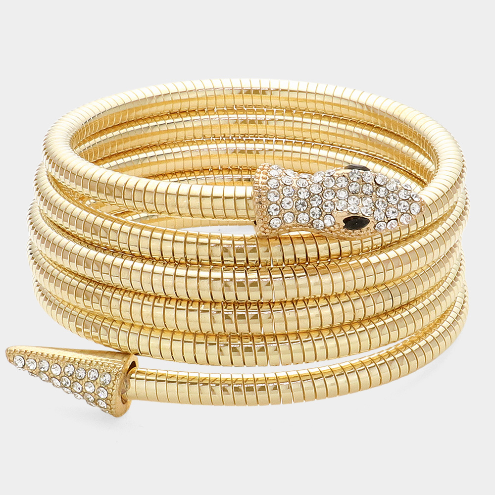Stone Paved Snake Head Pointed Coil Adjustable Bangle Bracelet