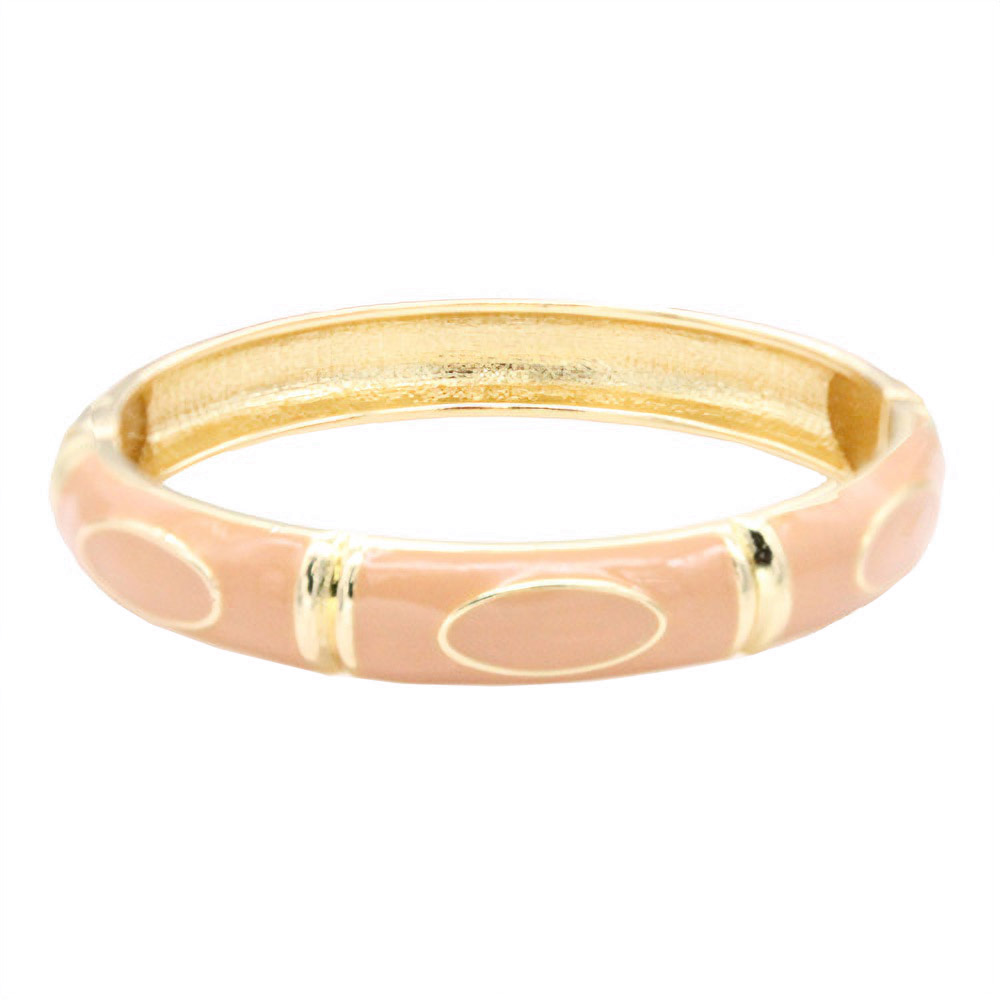Details • Size : 0.4" H, 2.4" D • Hinged Closure • Elegant enamel bangle bracelet featuring smooth oval accents and a polished hinged design. A timeless statement accessory that adds refined charm to any outfit. Perfect for formal, casual, or workwear styling with a sleek and sophisticated finish. • Lead and Nickel Compliant