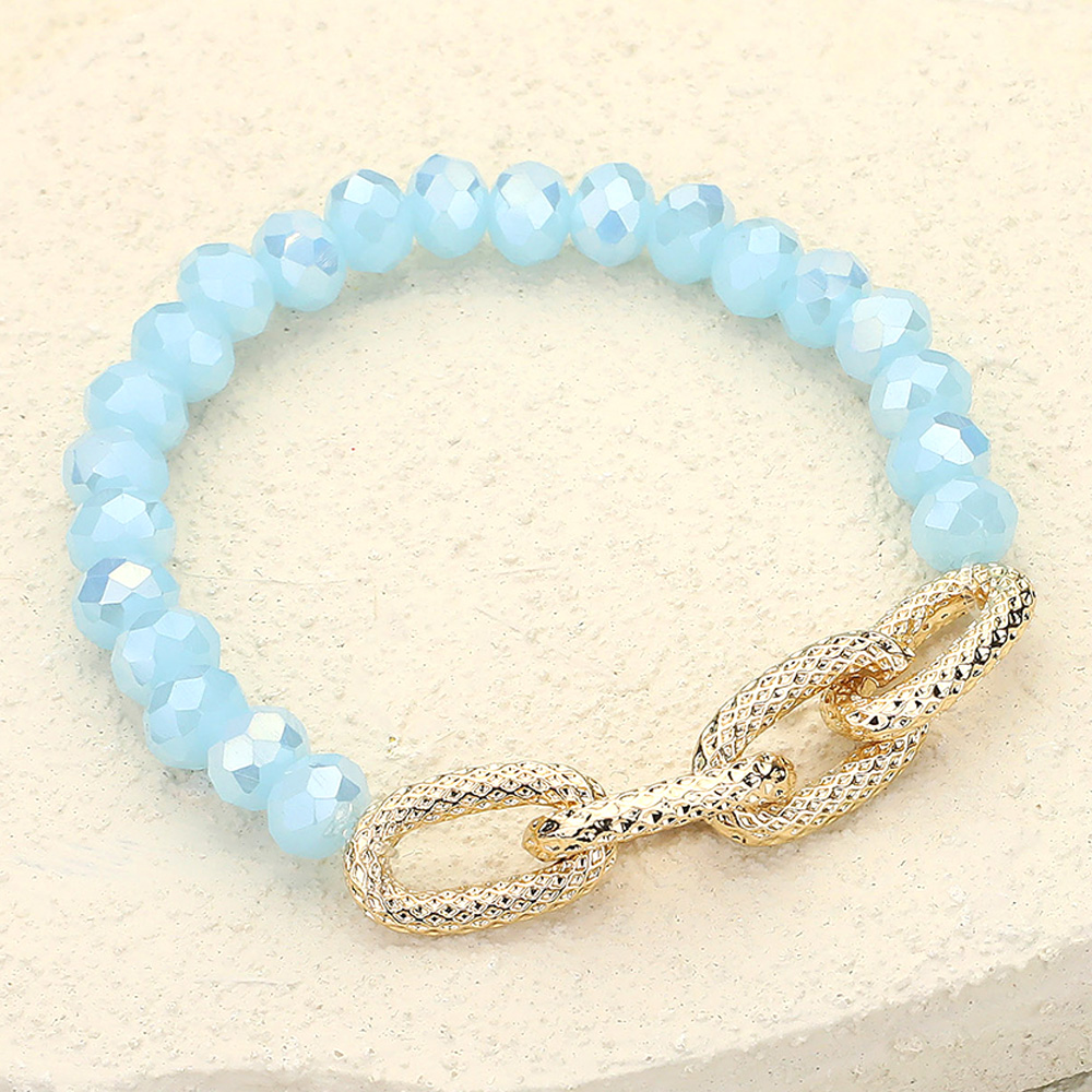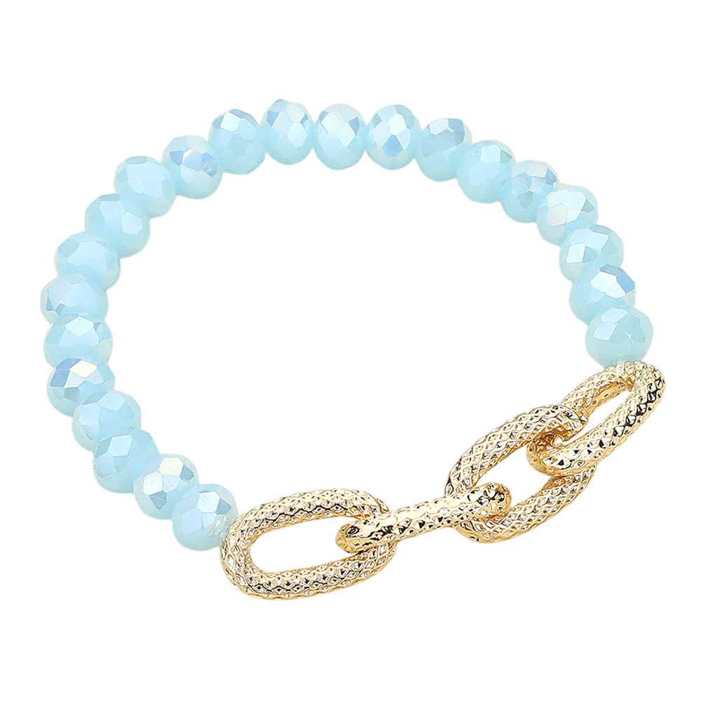 Textured Metal Link Accented Faceted Beaded Stretch Bracelet