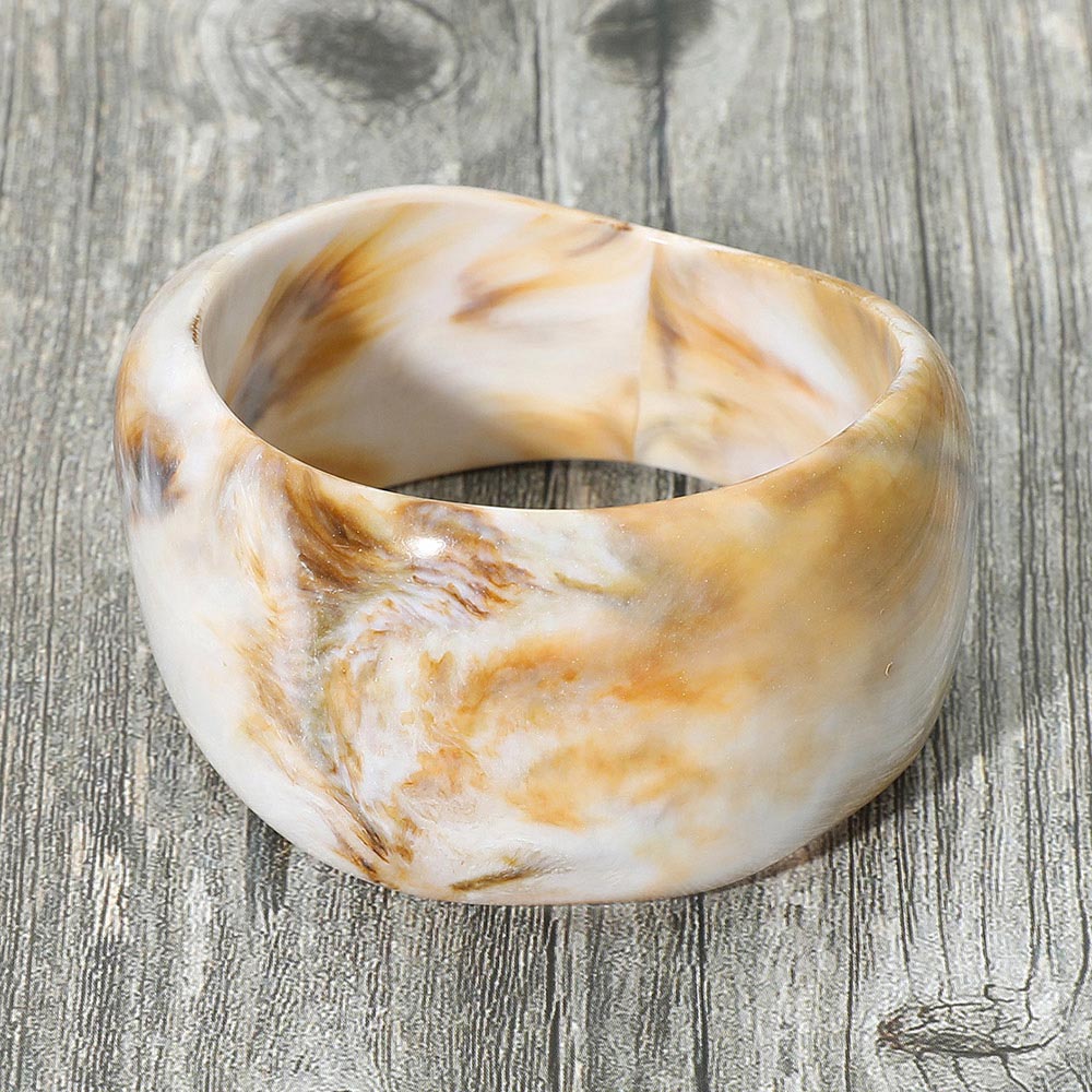 • Add bold style to your accessories with this wide resin bangle, featuring a striking marbled swirl design. Perfect for making a statement, this versatile piece complements both casual and dressy outfits with artistic flair and contemporary appeal.