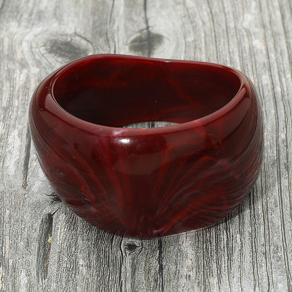Details • Size : 2.1" H, 2.5" D • Add bold style to your accessories with this wide resin bangle, featuring a striking marbled swirl design. Perfect for making a statement, this versatile piece complements both casual and dressy outfits with artistic flair and contemporary appeal.