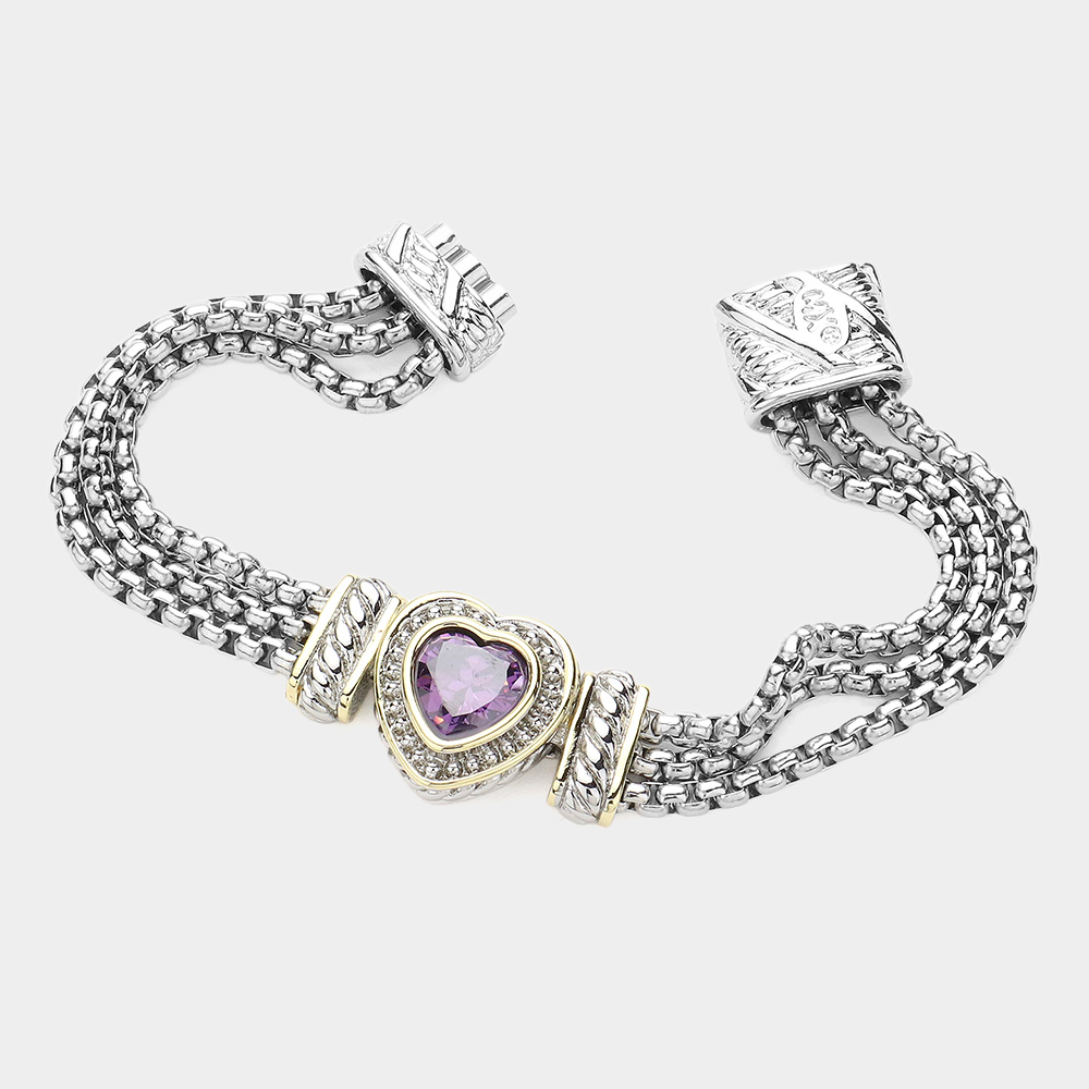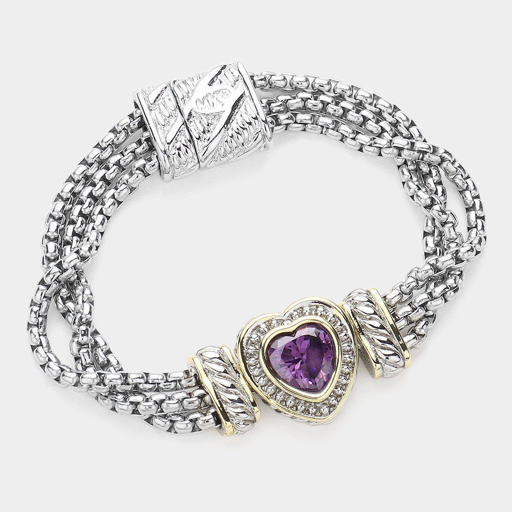 14K Gold Plated CZ Stone Paved Heart Pointed Magnetic Bracelet