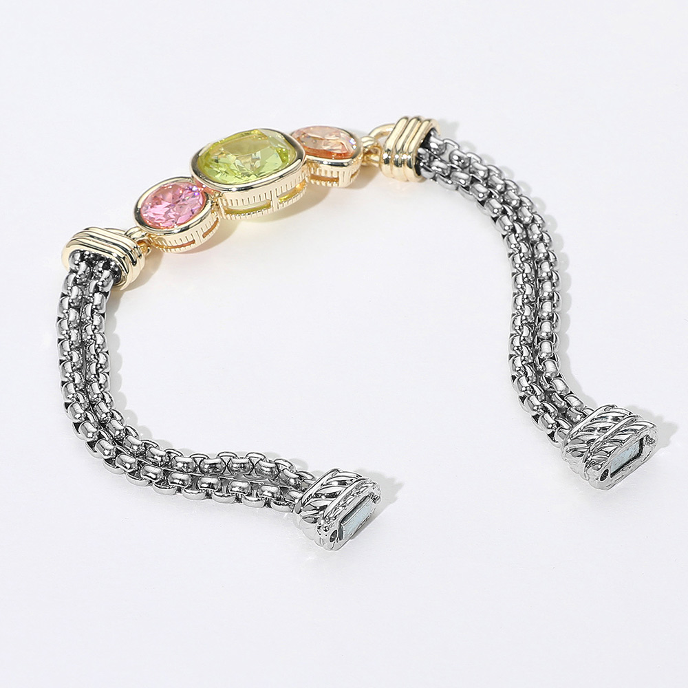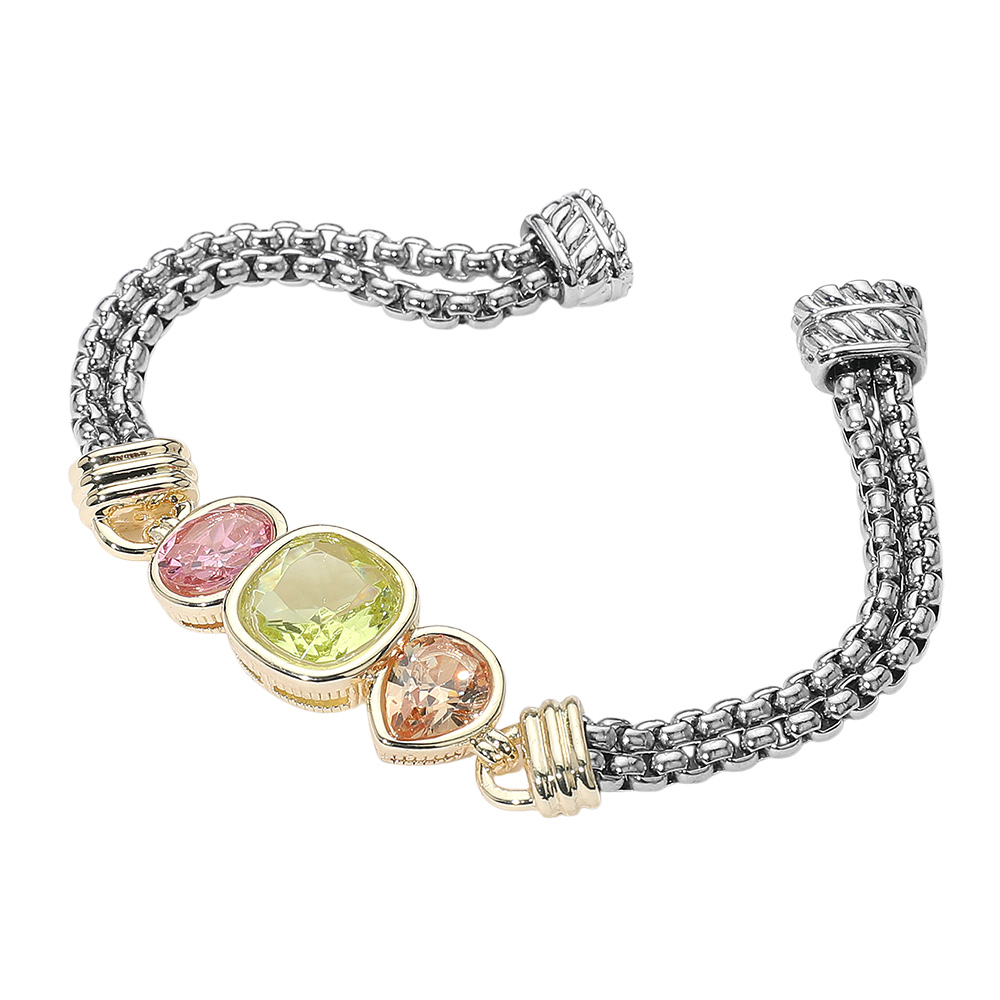Square Oval Teardrop CZ Stone Bezel Accent Magnetic Bracelet