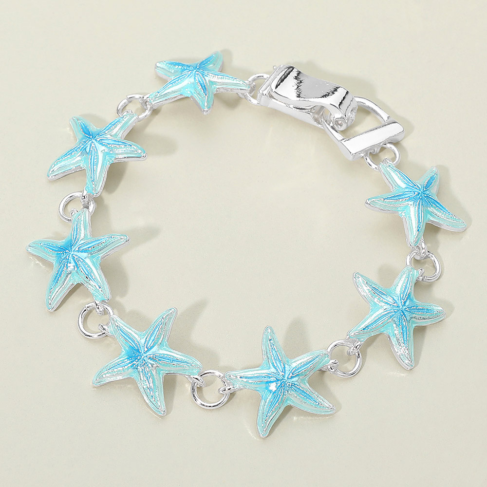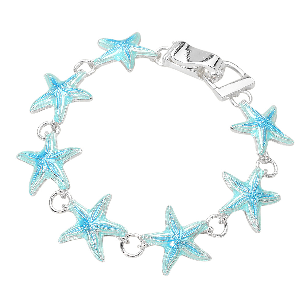 • Ocean-inspired starfish charm bracelet featuring detailed linked motifs and a secure magnetic clasp for easy wear. A playful yet stylish accessory ideal for beach boutiques, gift shops, and seasonal displays, offering standout coastal appeal and everyday versatility.
