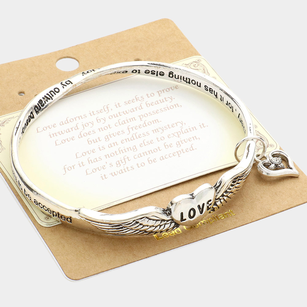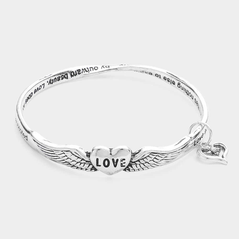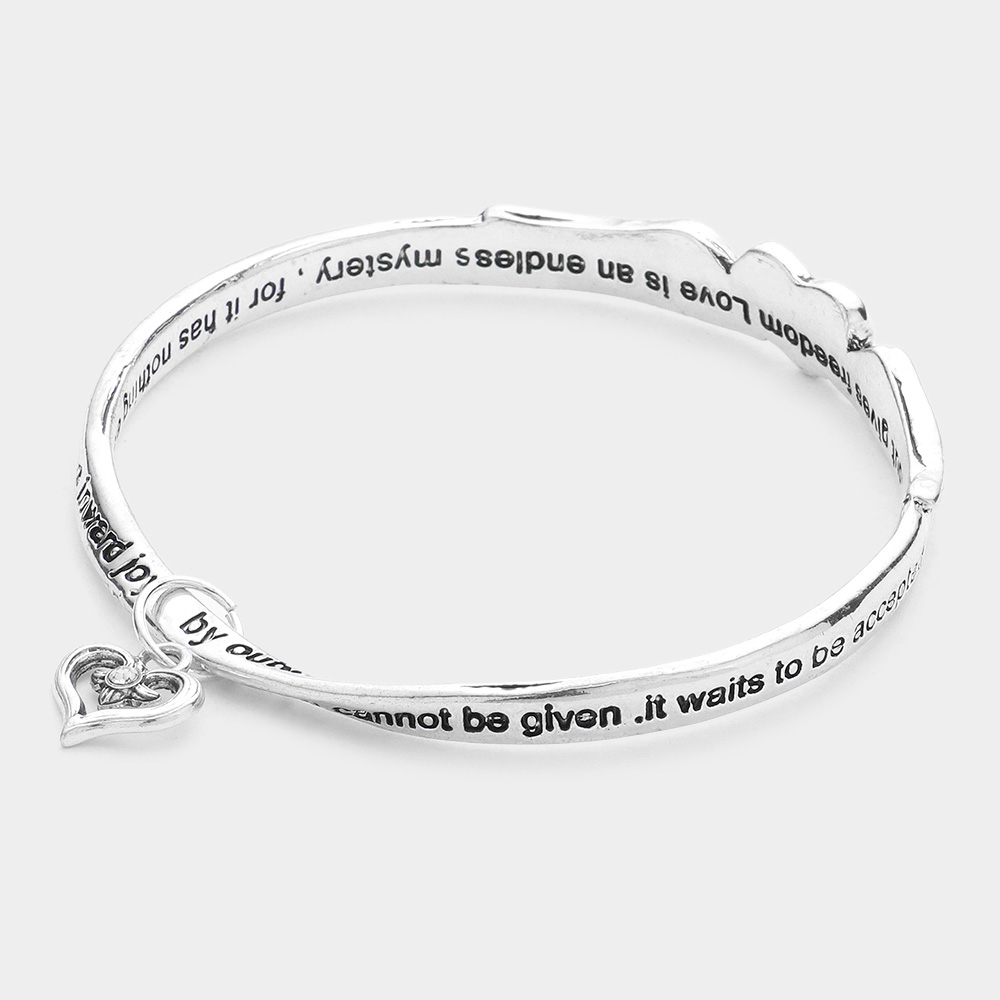 Inspirational Engraved Affection Heart Charm Embellished Bracelet
