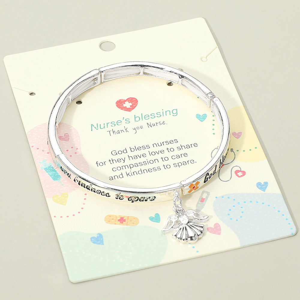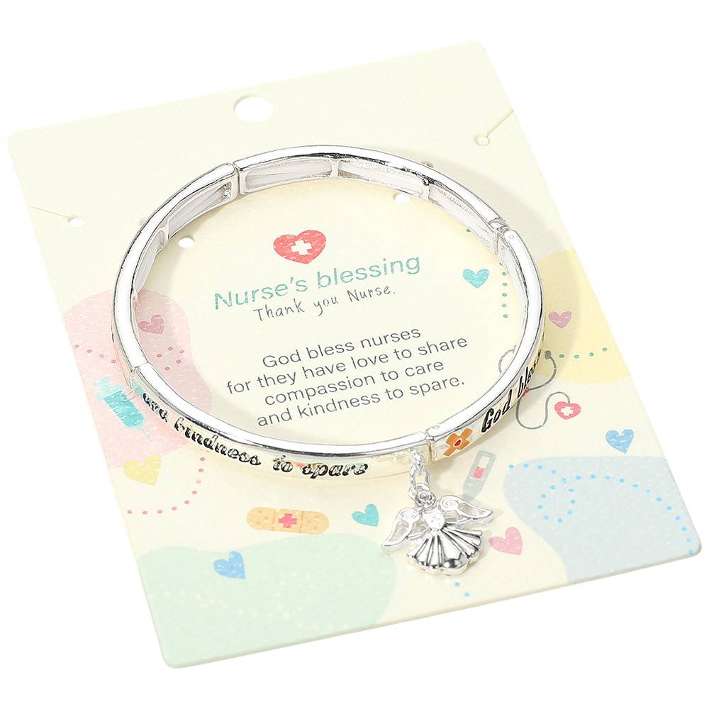 Details • Size : 0.25" H • Charm Size : 0.7" X 0.6" • Stretchable • Nurse’s Blessing bracelet featuring engraved inspirational message and angel charm, a meaningful accessory designed to honor compassion and dedication. A heartfelt appreciation gift perfect for celebrating nurses and expressing gratitude for their care and kindness. • Lead and Nickel Compliant