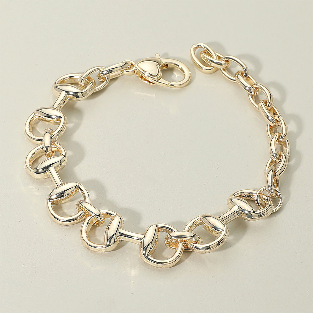 Details • Size : 0.5" H, 6" + 3" L • Lobster Clasp Closure • Modern chain link bracelet featuring bold, rounded links that create a striking yet versatile look. Perfect for layering with other accessories or wearing solo, this statement piece adds a touch of edge and sophistication to casual or dressy outfits, making it a must-have jewelry essential. • Gold Dipped