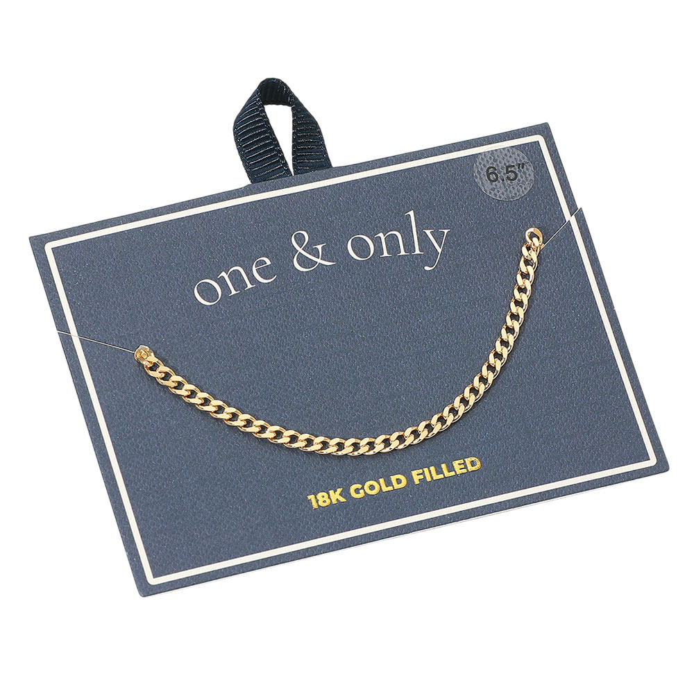 Details • Size : 0.1" H (3mm), 6.5" L • Lobster Clasp • Timeless Cuban chain bracelet featuring smooth flat links with a sleek polished shine. Its classic design offers effortless sophistication, perfect for daily wear or layering with other pieces. A versatile accessory that adds a refined touch to any modern or classic look. • Lead and Nickel Compliant • Gold Filled • Made In Brazil