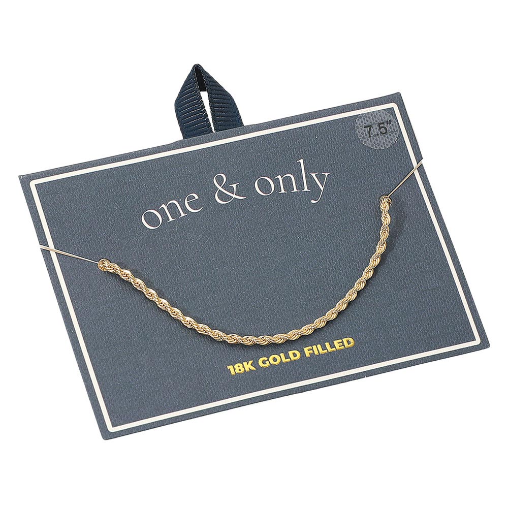 Details • Size : 0.1" H (2mm), 7.5" L • Lobster Clasp Closure • Refined rope chain bracelet showcasing a beautifully twisted pattern for a timeless look. Its intricate braided design adds sophistication and shine, perfect for layering or wearing solo. A chic, minimal accessory that elevates everyday or special occasion styles. • Lead and Nickel Compliant • Gold Filled • Made In Brazil