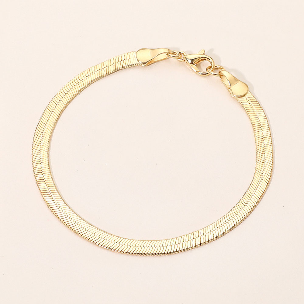 Details • Size : 0.1" H (2mm), 6.5" L • Lobster Clasp Closure • Elegant snake chain bracelet featuring a smooth, flexible design with a refined shine. Its sleek, minimalist look makes it perfect for layering or wearing alone. A timeless accessory that brings sophistication and modern elegance to any outfit or jewelry collection. • Gold Filled • Lead and Nickel Compliant • Made In Brazil