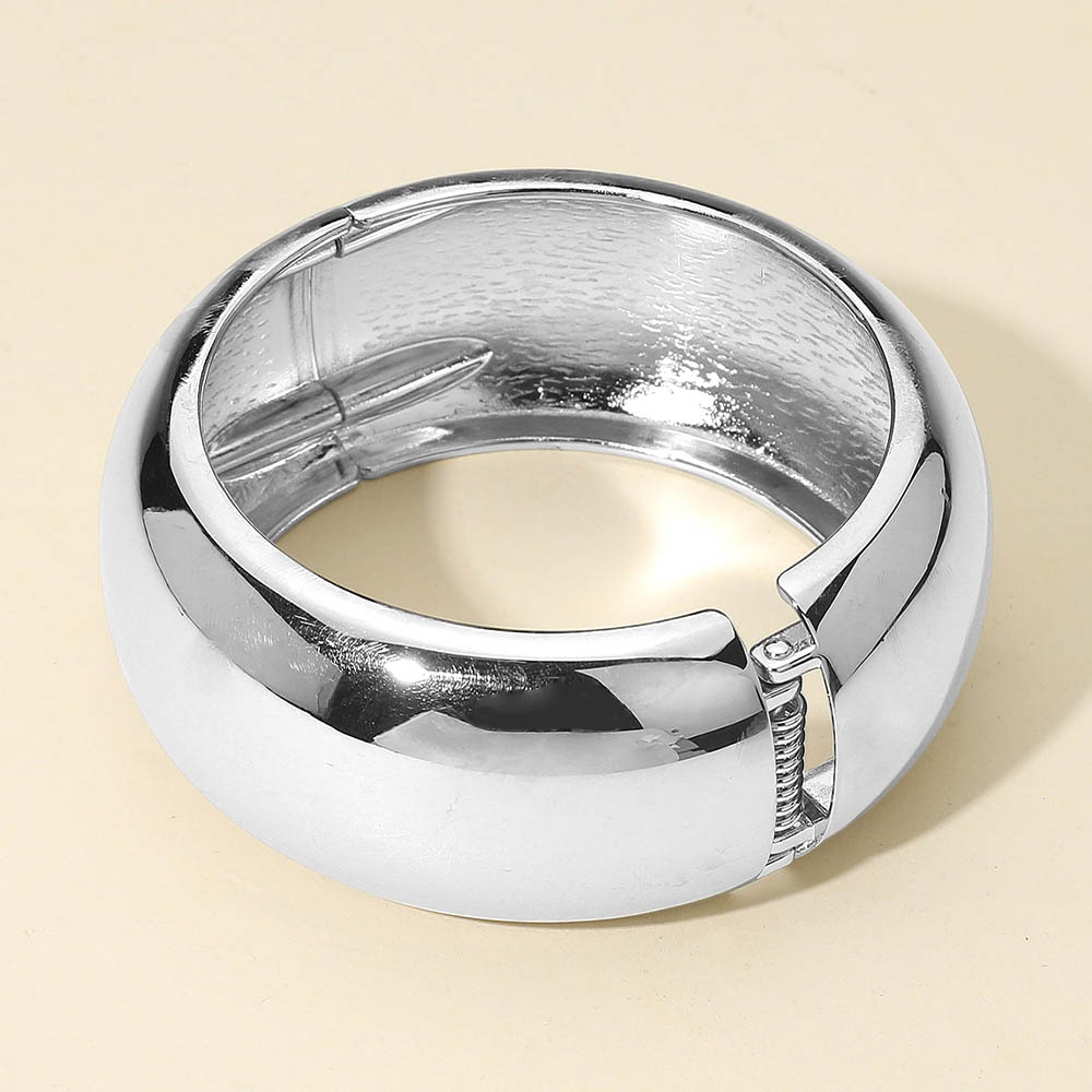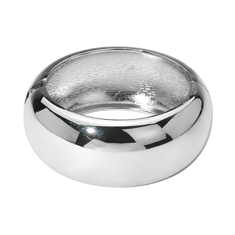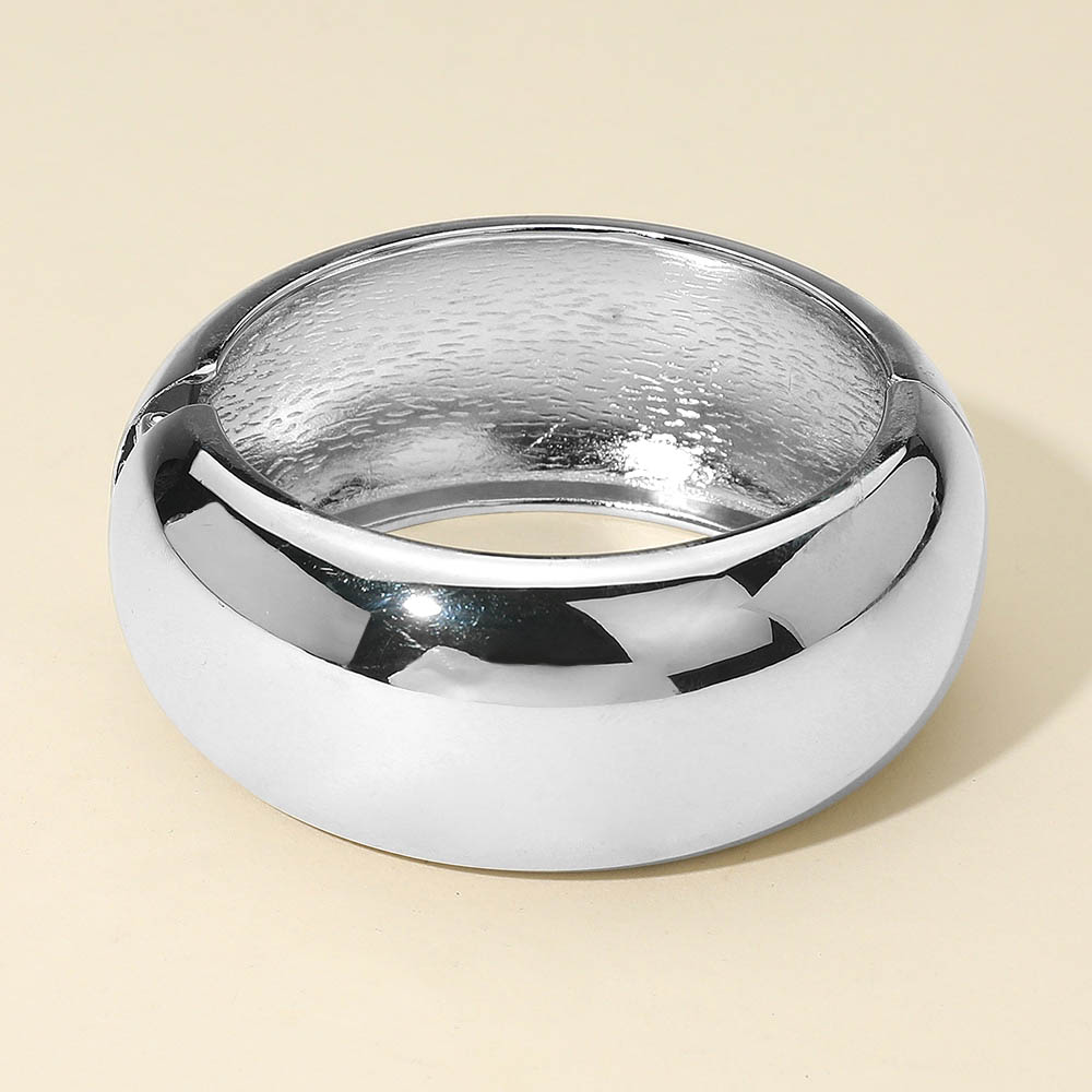 Details • Size : 1.25" H, 2.4" D • Hinged Closure • Elevate your accessories with this wide dome bangle bracelet featuring a smooth, polished finish. Its bold, rounded design makes a timeless statement, perfect for stacking or wearing solo. A versatile piece that transitions seamlessly from casual wear to elegant evening looks with effortless style. • Lead and Nickel Compliant