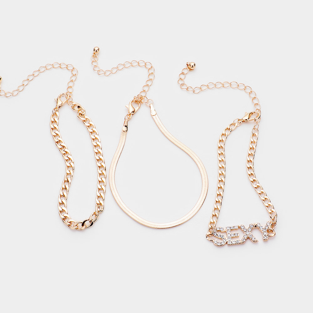 3PCS - SEXY Rhinestone Embellished Metal Chain Bracelets