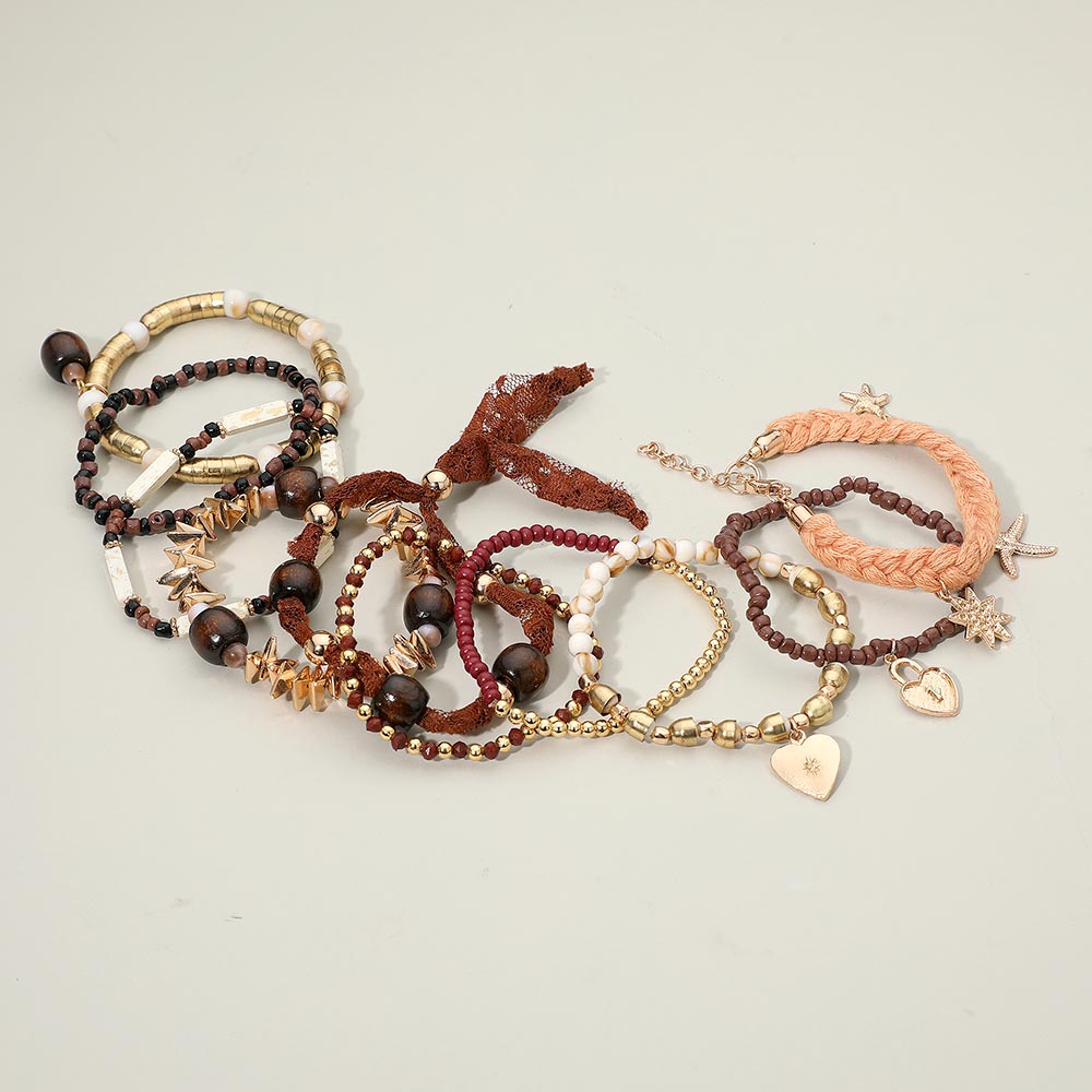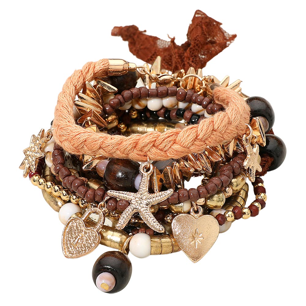 Details • Size 1 : 1.5" H / Stretchable • Size 2 : 0.5" H / Adjustable • Size 3 : 0.4" H, 7" + 2" L / Lobster Clasp Closure • A multi-layer boho bracelet set featuring mixed beads and playful charm details designed to bring a warm, eclectic touch to any look. This stackable collection offers effortless styling versatility, making it ideal for adding personality and movement to your everyday accessories. • Lead and Nickel Compliant • Made In India