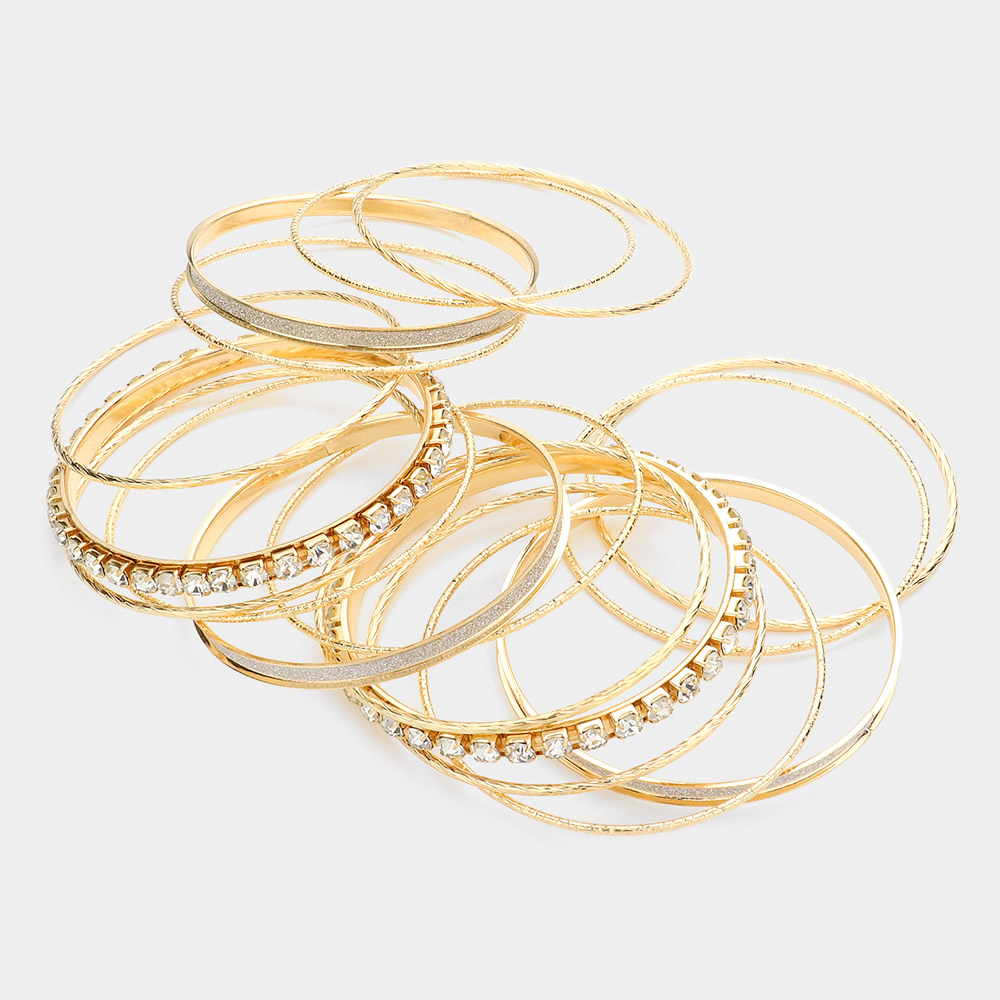 15PCS - Stackable Stone Embellished Metal Bangle Bracelets
