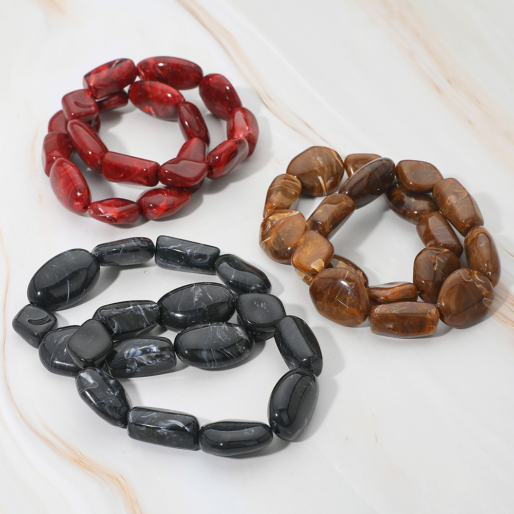2PCS - Chunky Marbled Resin Multi Shape Pebble Beaded Stretch Multi Layered Bracelets