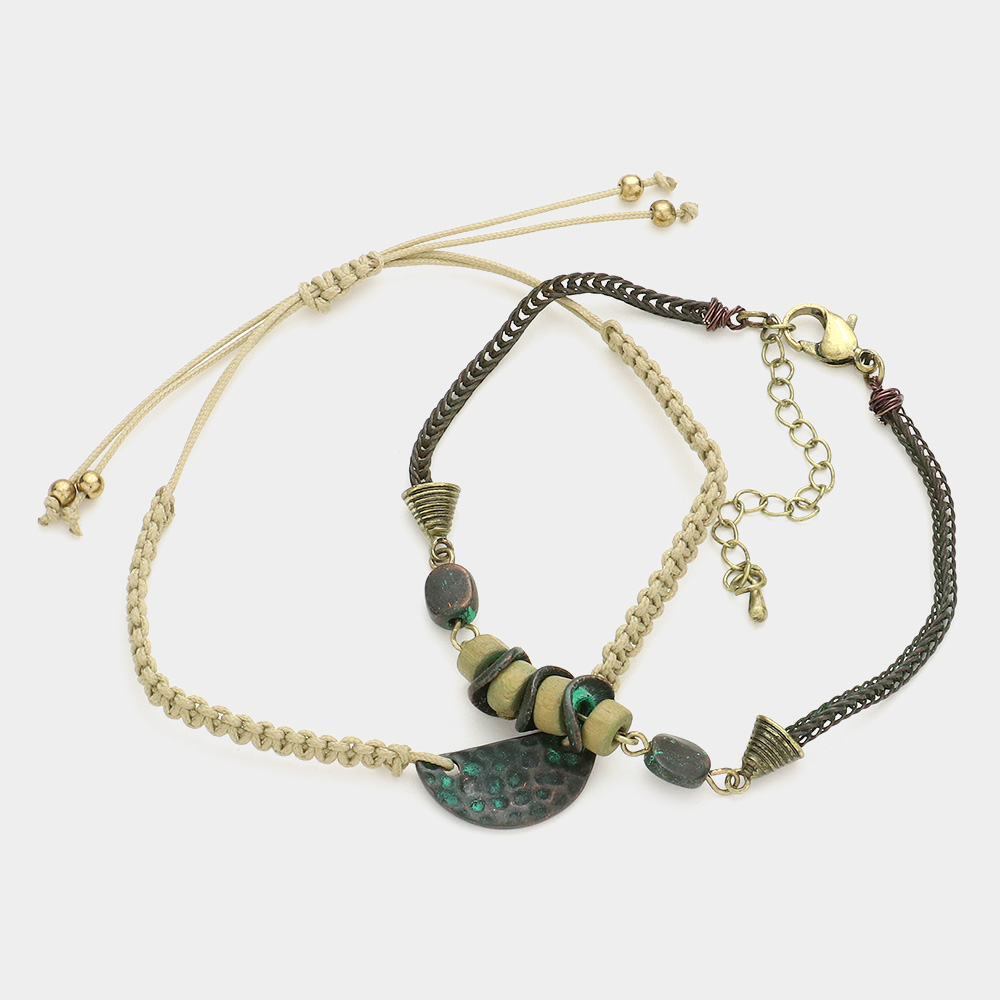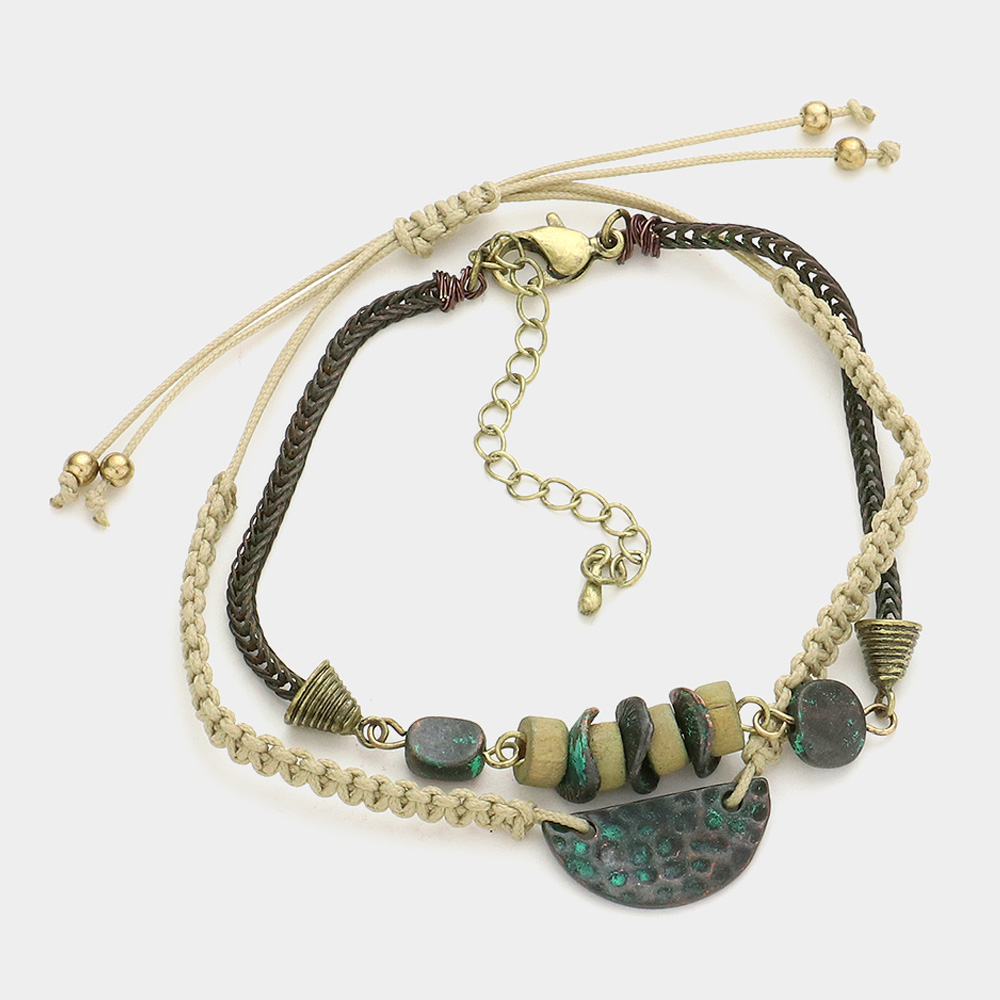 Colored Wood Open Metal Oval Link Triple Layered Necklace