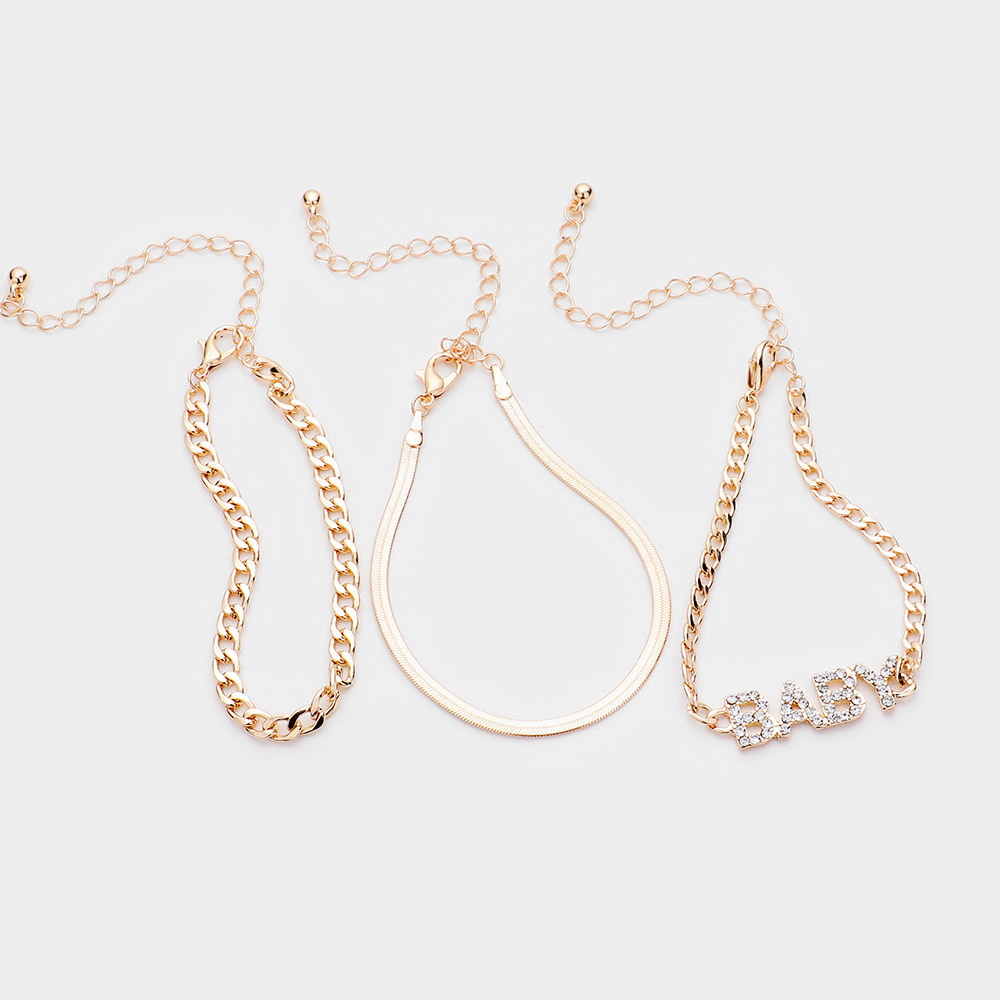 3PCS - BABY Rhinestone Embellished Metal Chain Bracelets