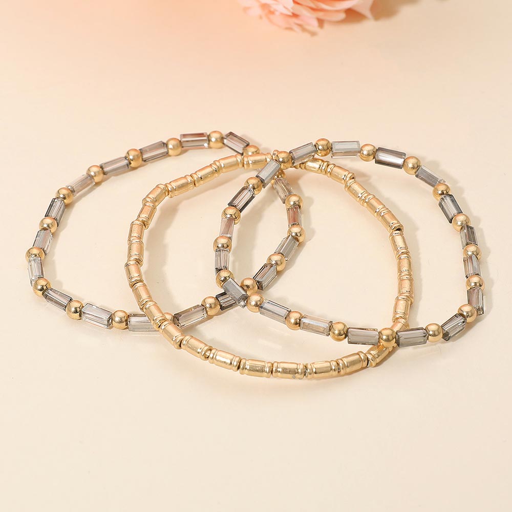 3PCS - Faceted Tube Beaded Stretch Multi Layered Bracelets