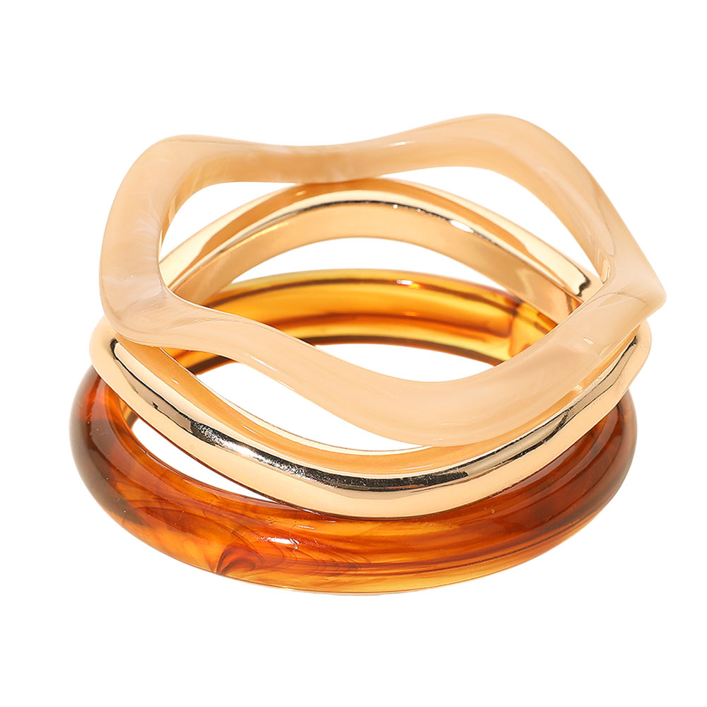 3PCS - Geometric Mixed Resin Metal Stackable Bangle Multi Layered Bracelets