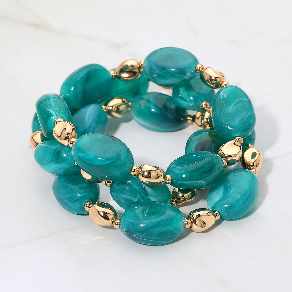 3PCS - Oval Pebble Beaded Stretch Multi Layered Bracelet