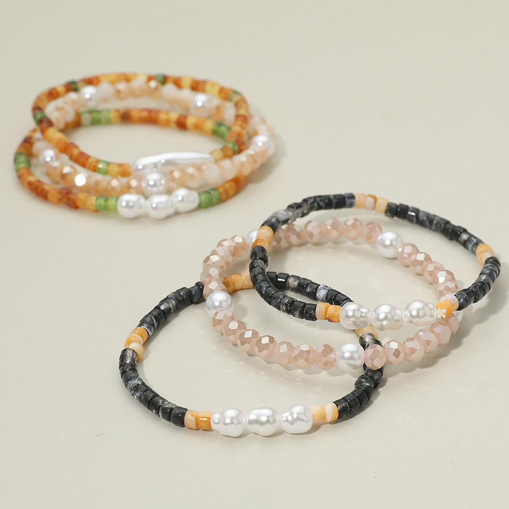 Details • Size : 0.75" H • Stretchable • This beaded stretch bracelet set combines faceted glass beads and faux pearl accents for a refined layered look. With its lightweight and flexible design, this multi-strand bracelet set is perfect for stacking and adds a touch of sophistication to any outfit. • Lead and Nickel Compliant