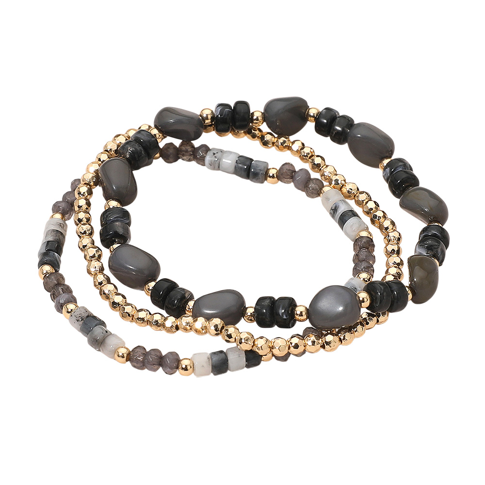 3PCS - Resin Pebble Metal Ball Beaded Stretch Multi Layered Bracelets
