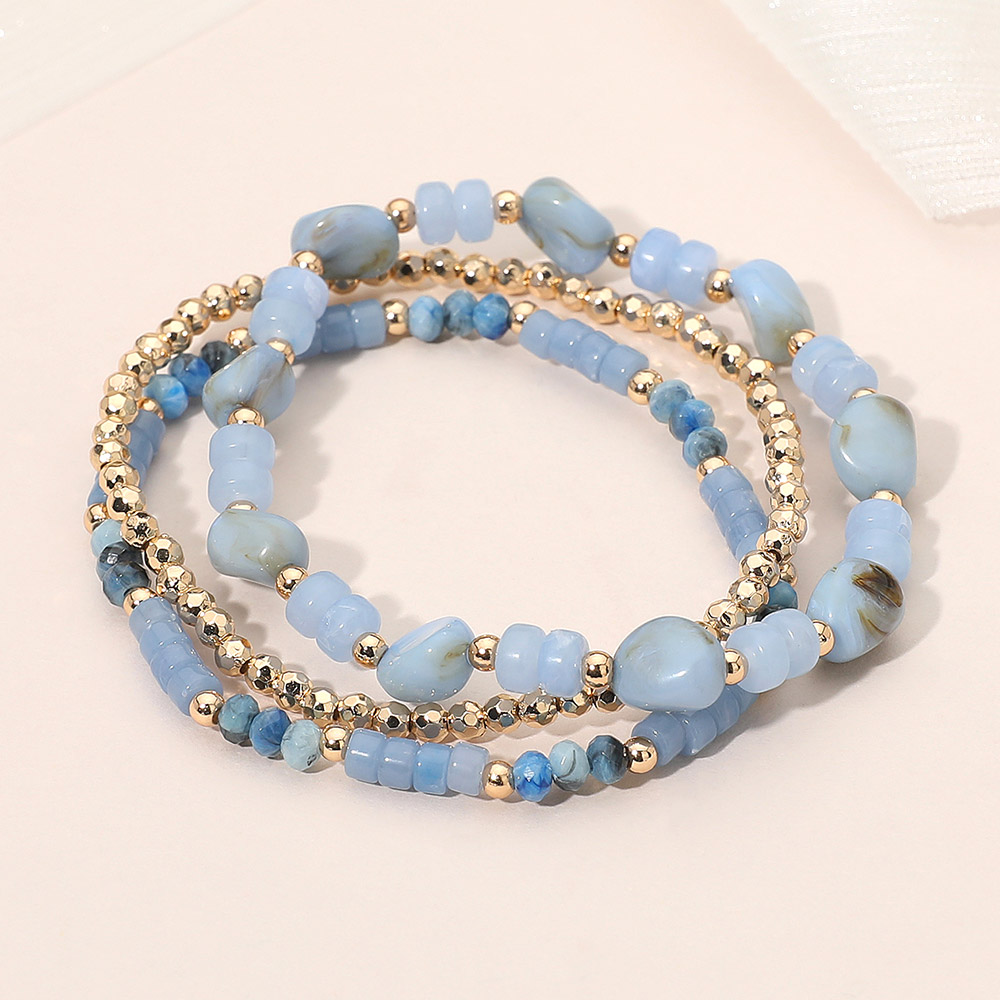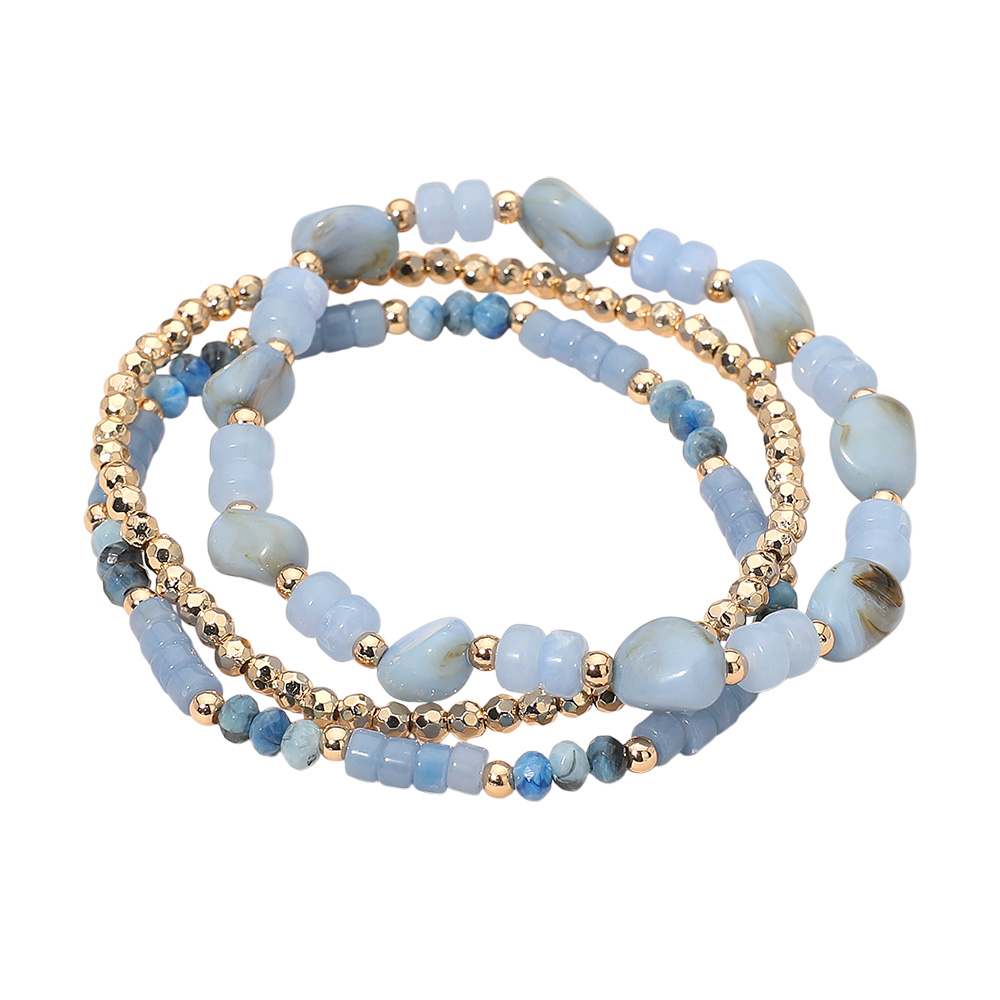 3PCS - Resin Pebble Metal Ball Beaded Stretch Multi Layered Bracelets