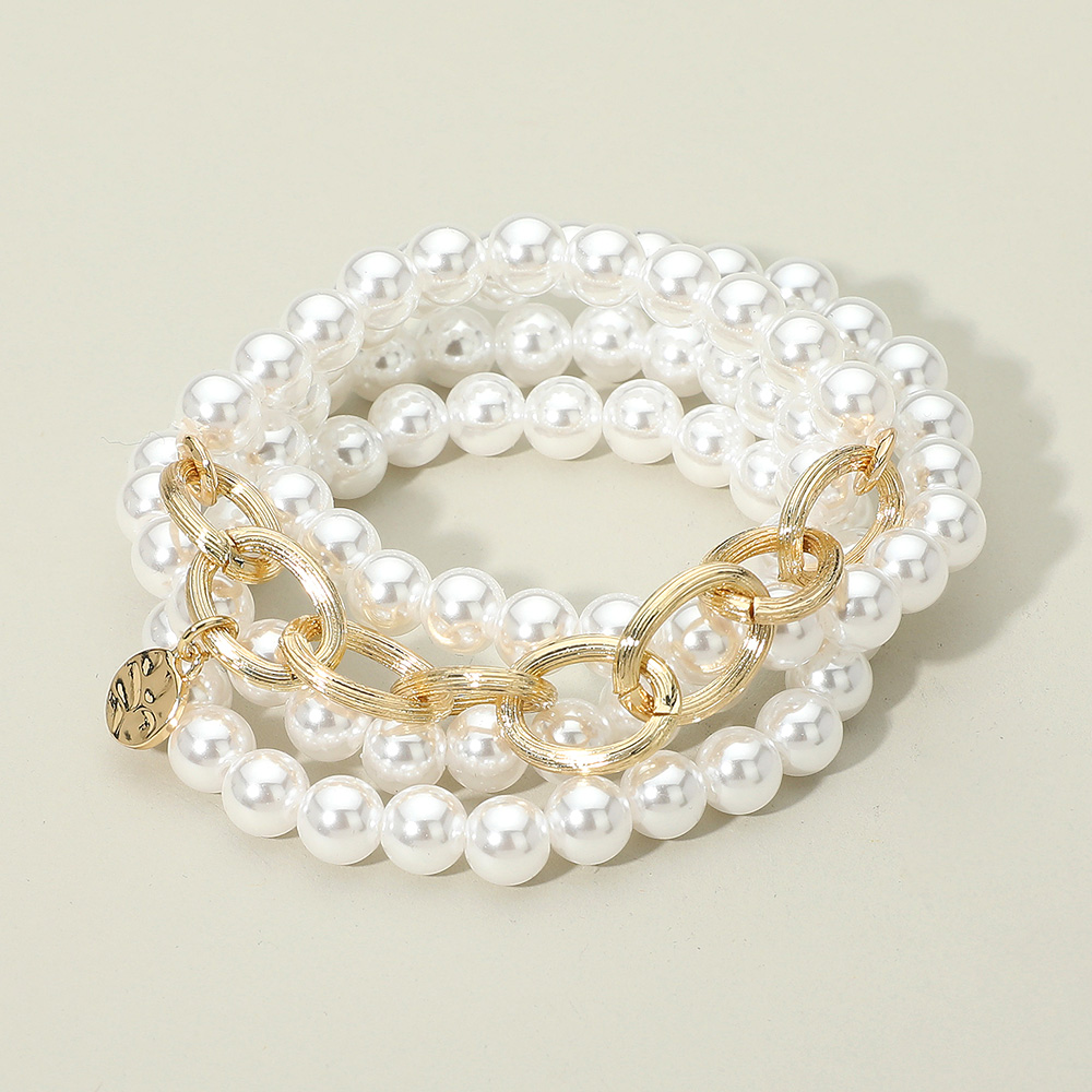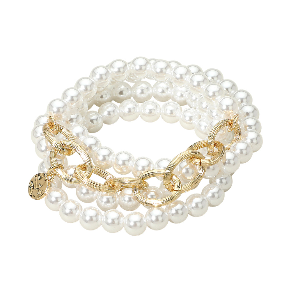 3PCS - Textured Metal Link Medal Charm Pearl Beaded Stretch Multi Layered Bracelets 3PCS - Textured Metal Link Medal Charm Pearl Beaded Stretch Multi Layered Bracelets 3PCS - Textured Metal Link Medal Charm Pearl Beaded Stretch Multi Layered Bracelets 3PCS - Textured Metal Link Medal Charm Pearl Beaded Stretch Multi Layered Bracelets