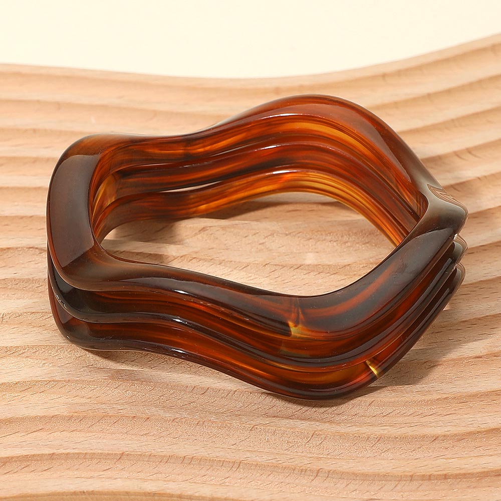 Details • Size : 1" H, 2.5" D • Add a bold twist to your look with this 3-piece resin bangle set featuring a unique wavy design. Lightweight and stackable, these bangles bring modern flair to casual or dressy outfits, making them the perfect fashion-forward accessory for everyday wear or gifting.