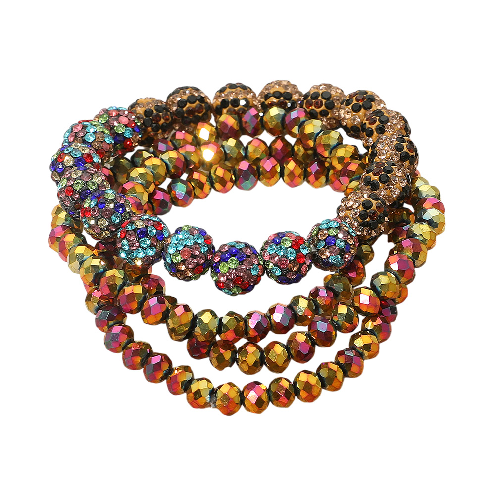 4PCS - Shamballa Ball Faceted Beaded Stretch Multi Layered Bracelets