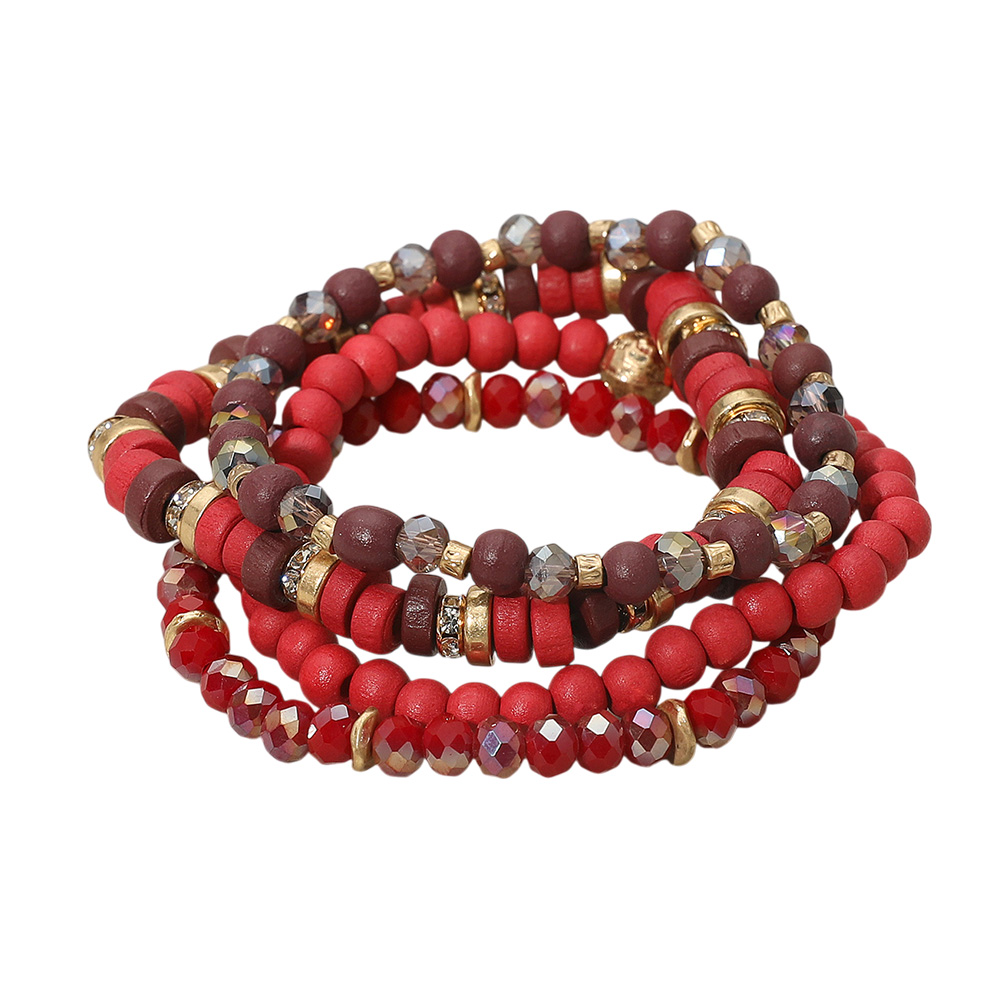 Details • Size : 1.1" H • Stretchable • This multi-strand stretch bracelet set features a mix of smooth and faceted beads with metallic accents, creating a bold layered look. Designed for comfort and versatility, it slips on easily and adds a stylish statement to casual or dressy outfits, perfect for everyday wear. • Lead and Nickel Compliant