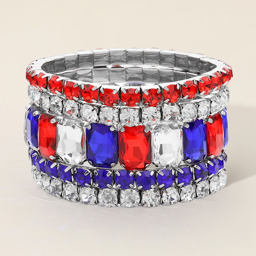 5PCS - Emerald Cut Round Stone Stretch Evening Bracelets