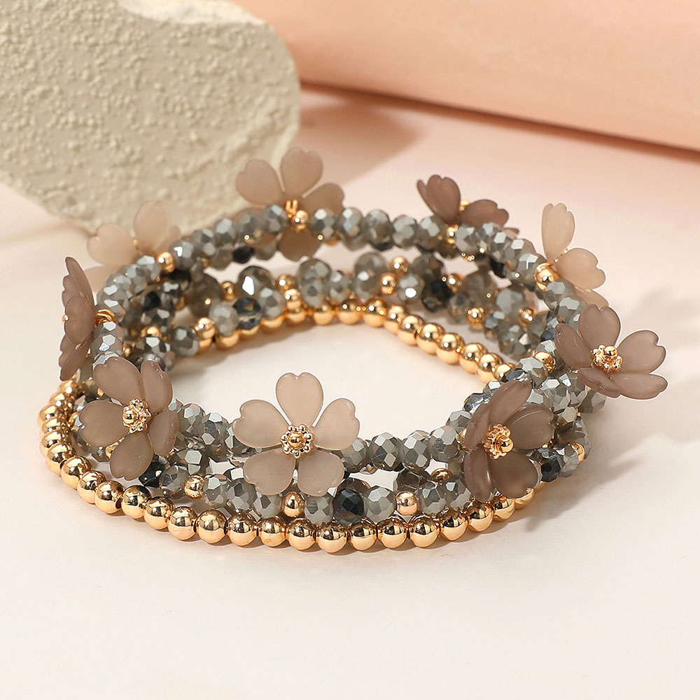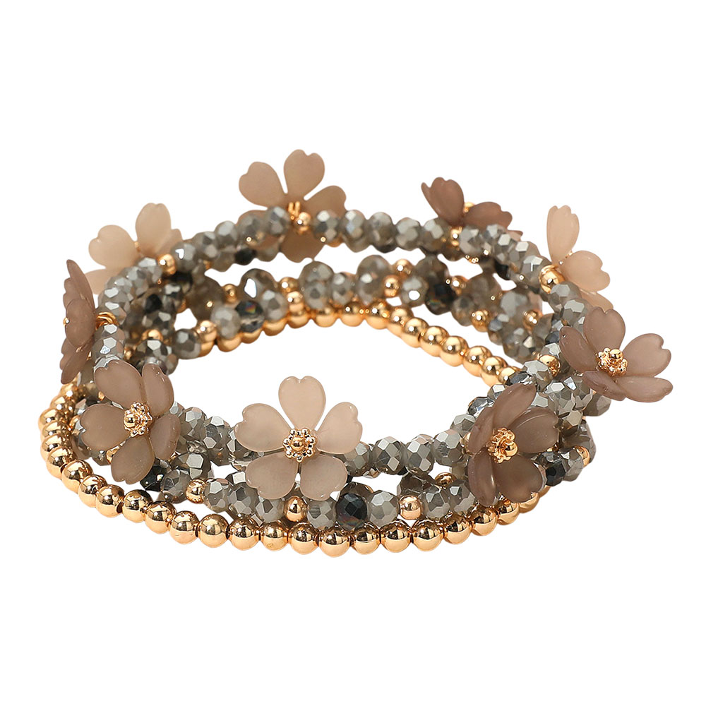 5PCS - Floral Faceted Beaded Stretch Multi Layered Bracelets