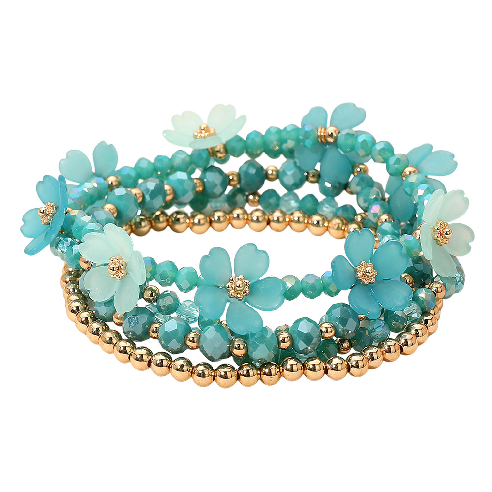 5PCS - Floral Faceted Beaded Stretch Multi Layered Bracelets