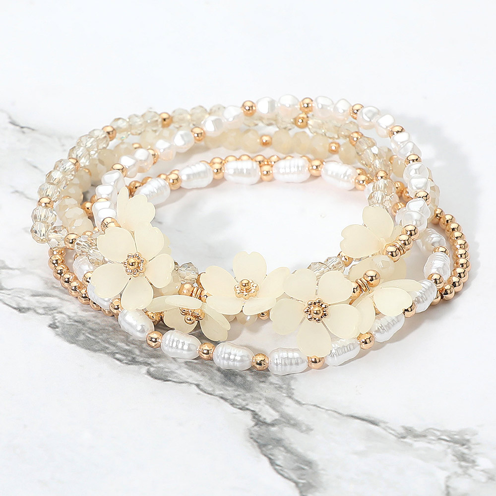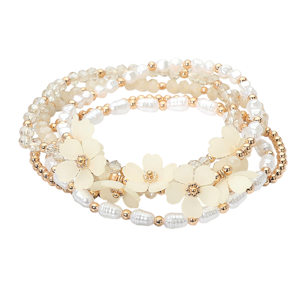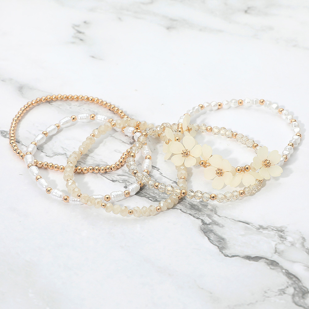 5PCS - Floral Pearl Faceted Beaded Stretch Multi Layered Bracelets