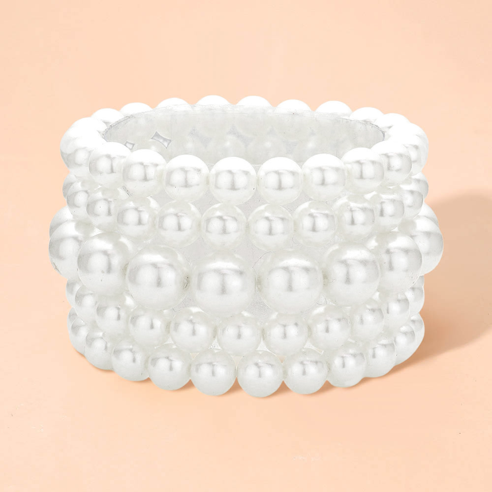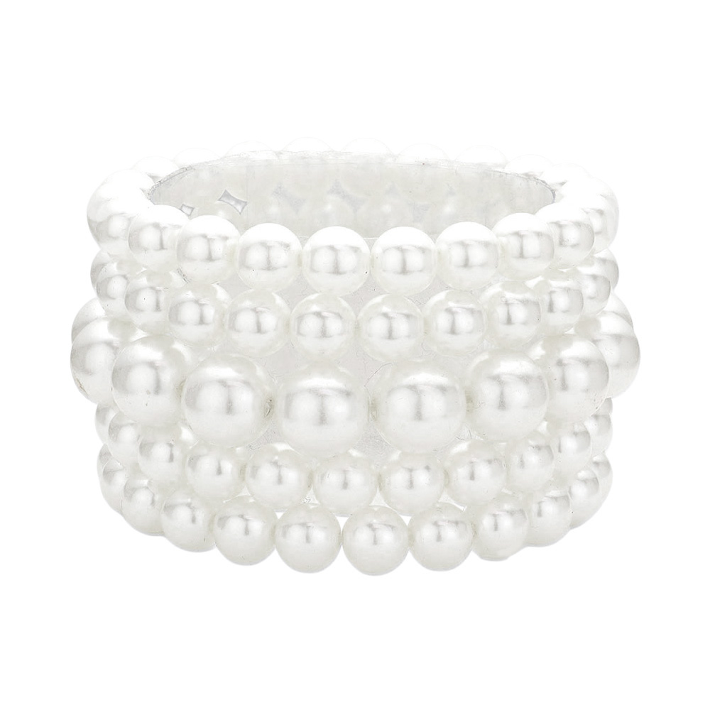 Details • Size : 2" H • Stretchable • Elegant stretch bracelet designed with multiple rows of lustrous pearl-like beads. A timeless statement accessory perfect for weddings, parties, and formal occasions, adding classic sophistication. • Lead and Nickel Compliant
