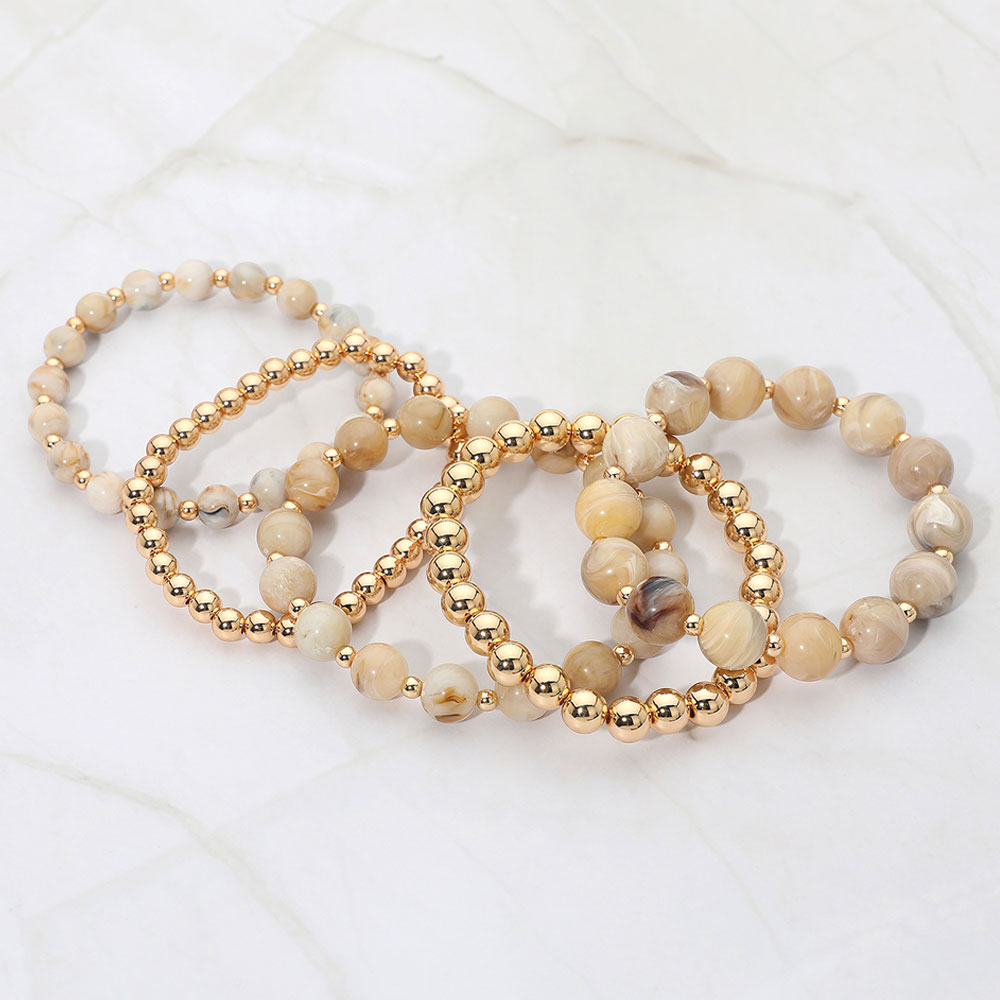 5PCS - Resin Metal Ball Beaded Stretch Multi Layered Bracelets
