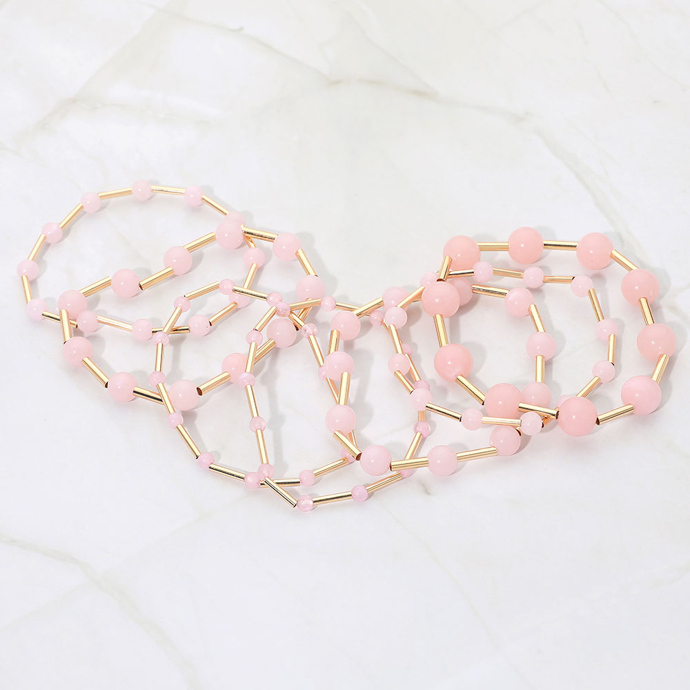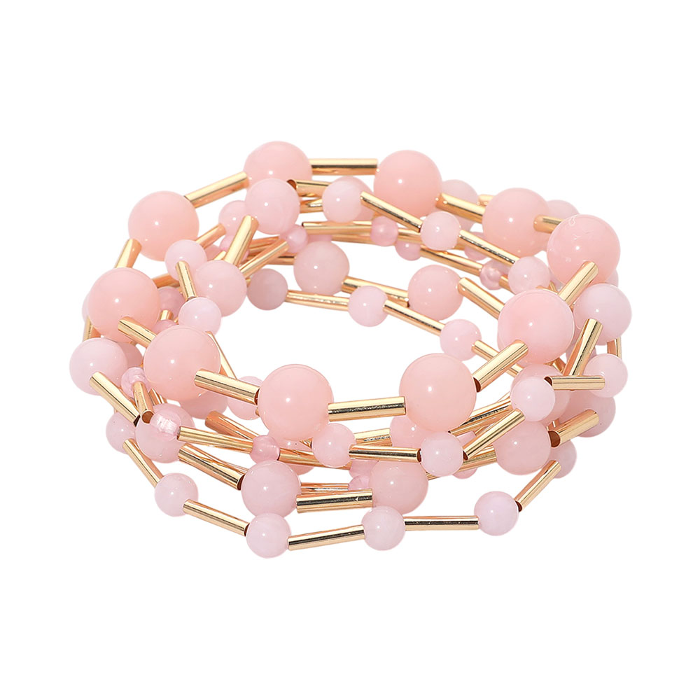 7PCS - Resin Ball Metal Bar Beaded Stretch Multi Layered Bracelets