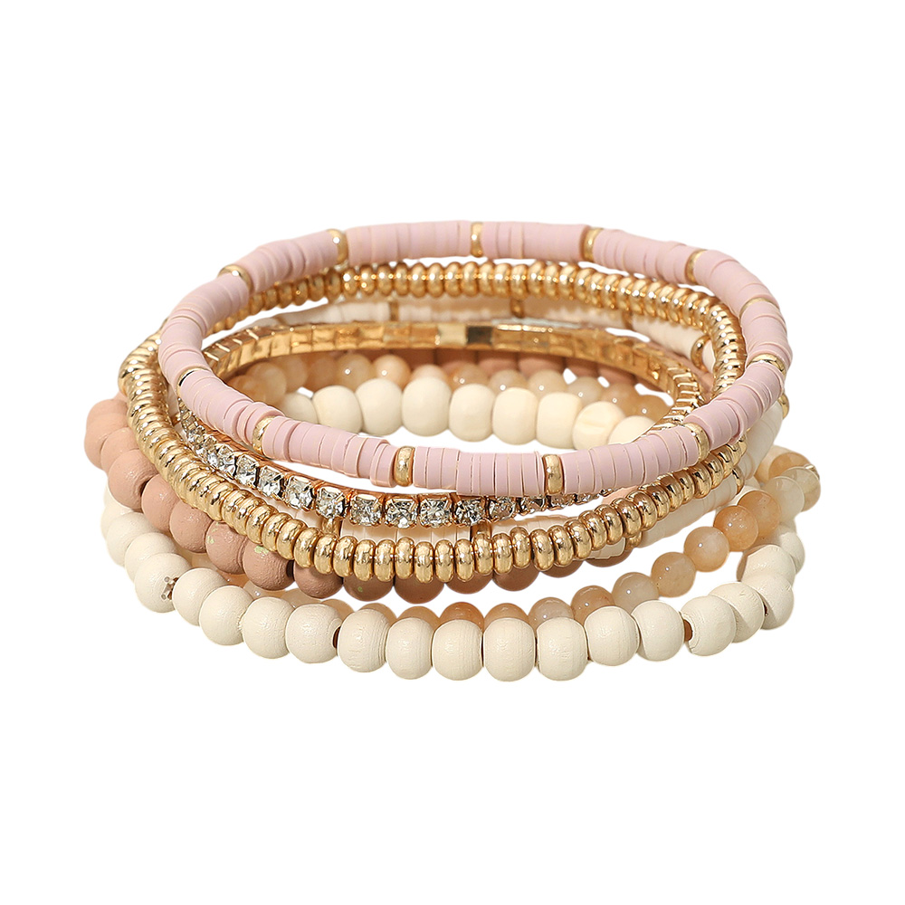 • This multi-strand stretch bracelet set combines a mix of smooth beads, metallic accents, and shimmering details for a stylish layered look. Easy to slip on, it offers comfort and versatility, making it perfect for stacking or wearing alone as a bold statement accessory.