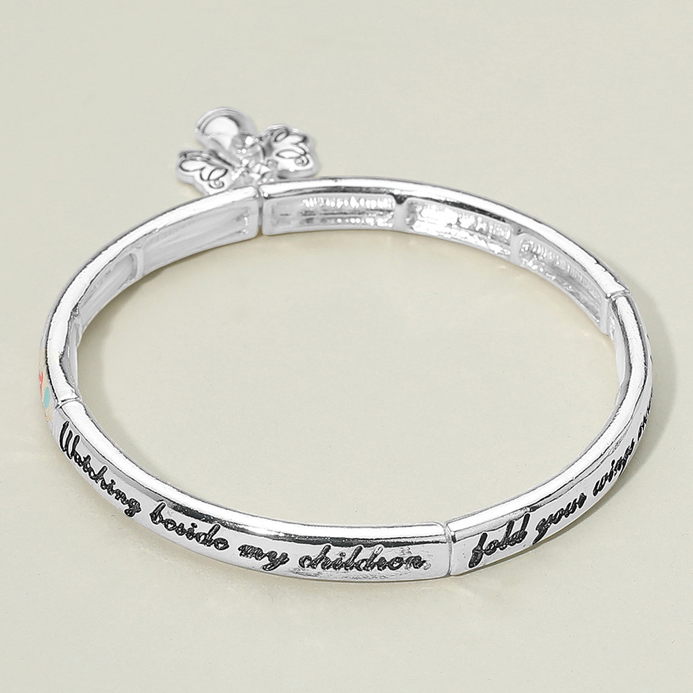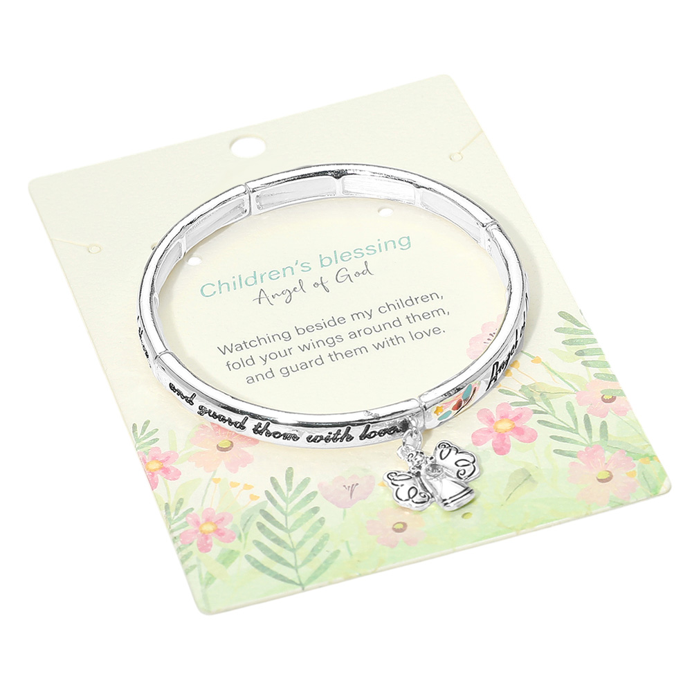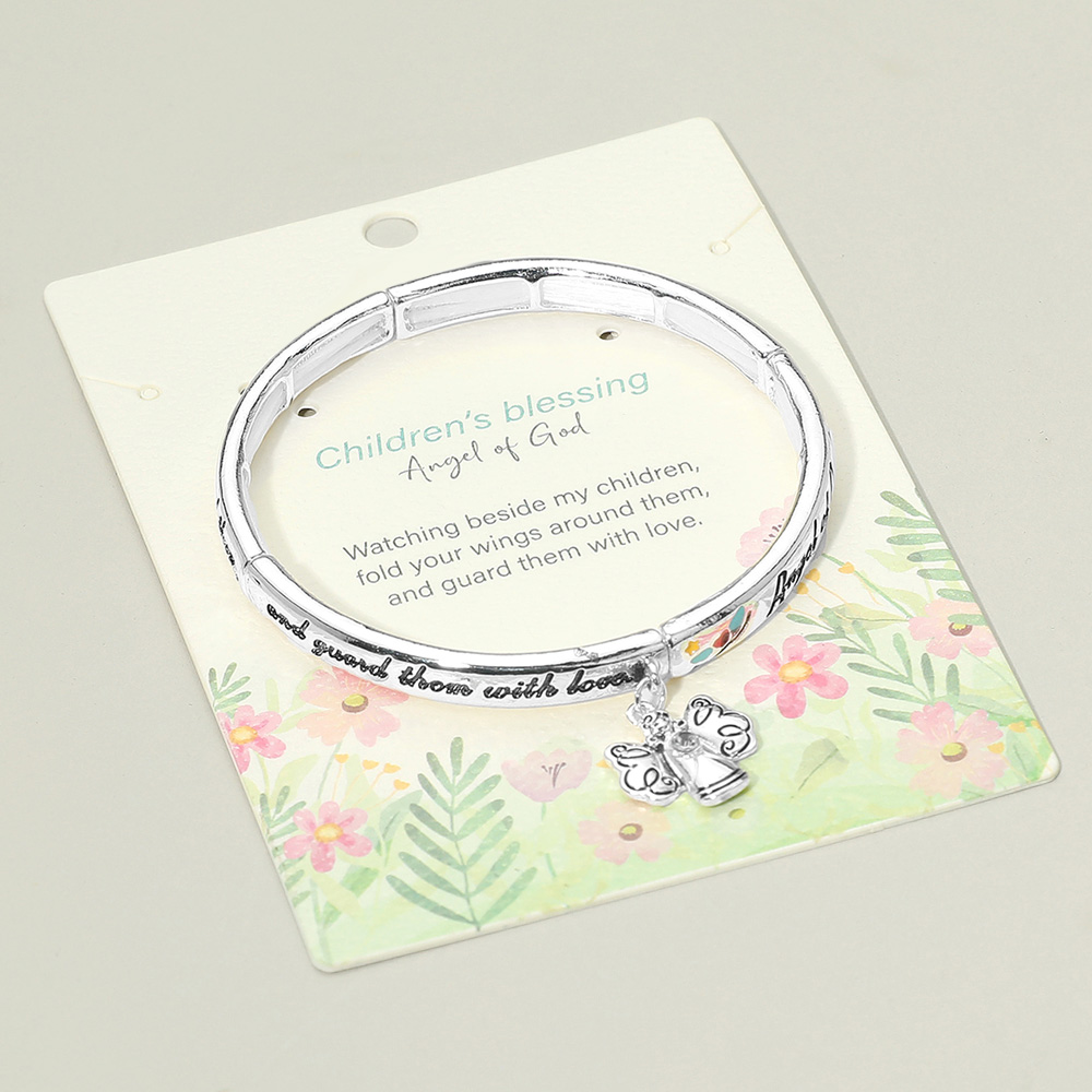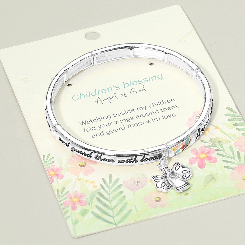 Details • Size : 0.25" H • Charm Size : 0.7" L • Stretchable • This children’s blessing bracelet features an angel charm and engraved inspirational message, symbolizing protection and love. A meaningful gift that captures faith and devotion, perfect for daily wear or as a thoughtful keepsake to cherish and share. • Lead and Nickel Compliant