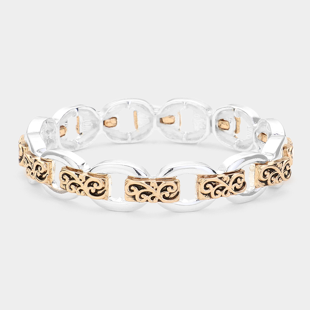 14K Gold Plated Two Tone CZ Stone Paved Ring Link Necklace
