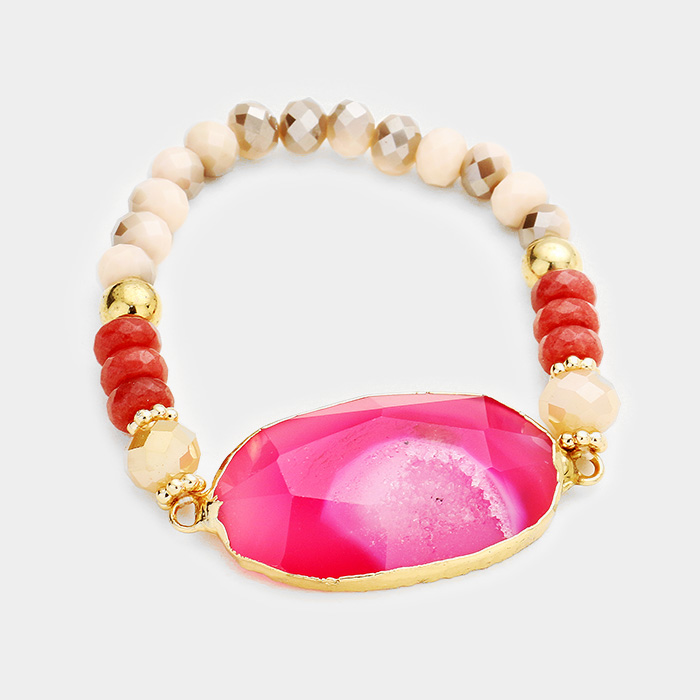 Beaded Glass Stone Accented Stretch Bracelet