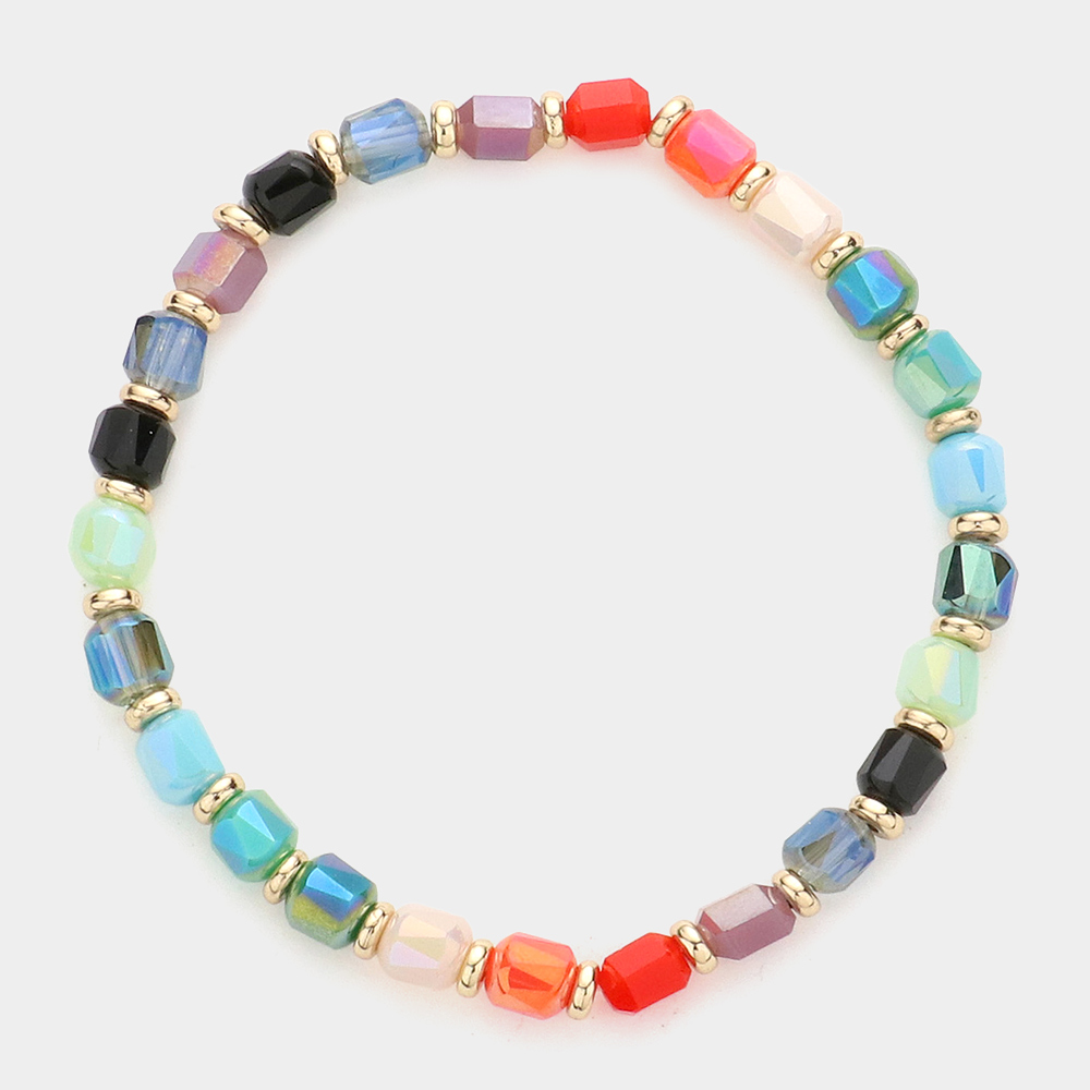 Stone Paved Skull Metal Spider Skeleton Charm Pointed Shamablla Ball Beaded Stretch Bracelet