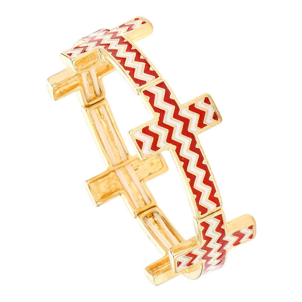 • This stretch bracelet features bold cross accents detailed with a modern chevron pattern, creating a striking blend of faith-inspired style and contemporary fashion. Easy to wear and versatile, it makes a statement piece that pairs beautifully with both casual looks and dressy outfits.