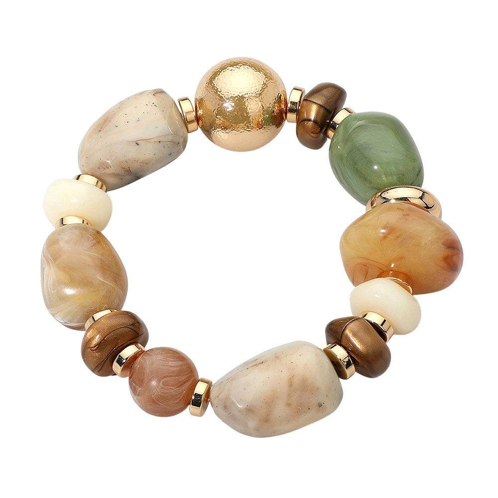 • This statement bracelet combines a mix of smooth and textured beads with subtle metallic touches, creating a chic, earthy appeal. Its elastic stretch design ensures comfort and versatility, making it the perfect accent for both casual looks and elegant ensembles.