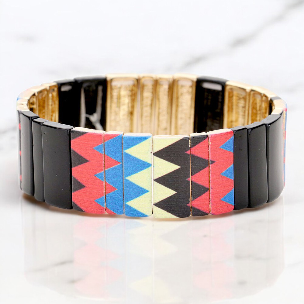 Colorful Multi Pattern Metal Stretch Bracelet