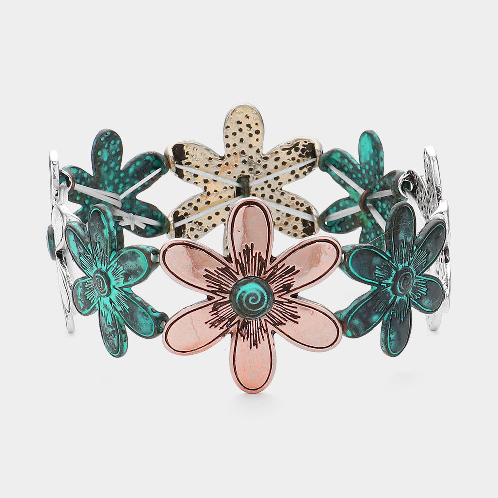 Stone Cluster Bud Enamel Rim Flower Earrings